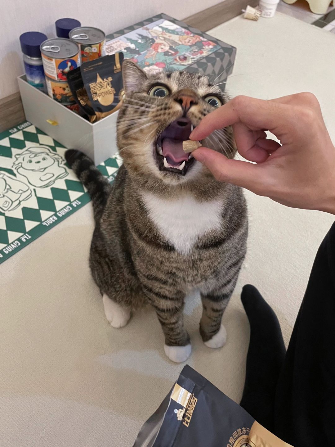 大嘴饼吃冻干的也太可爱啦!!没忍住多喂了他点,哎总是被这个猪咪骗零食🤣~看在毛毛摸起来超舒服的份上,过几天再给宝多囤些好吃的吧~