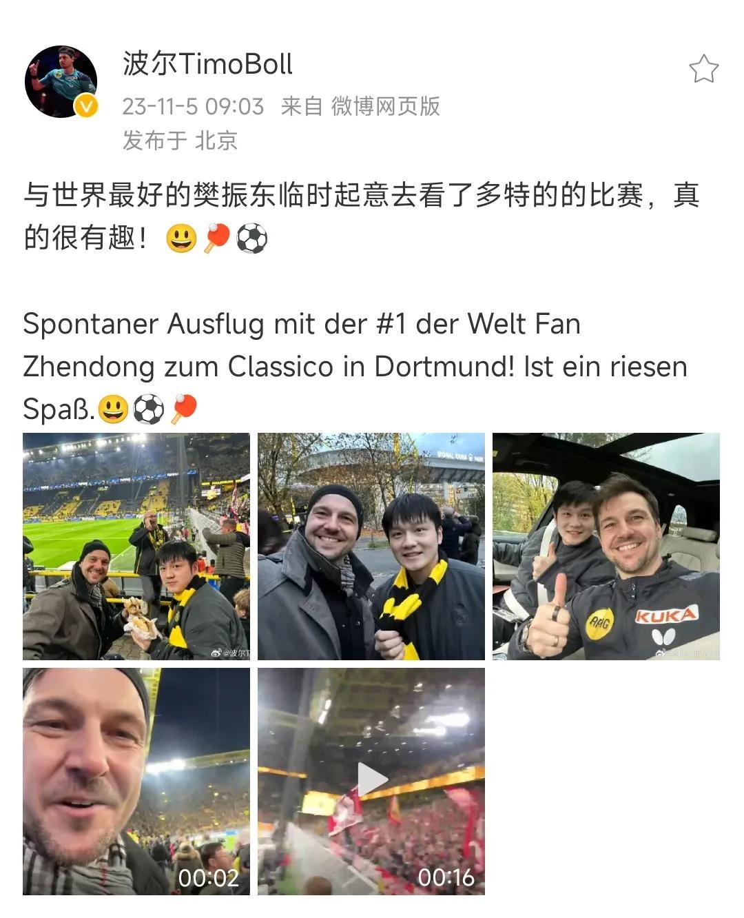 人生不只有小白球,樊振东喊波叔去看多特蒙德对拜仁的球赛,活脱脱的铁杆一枚!波叔说他已经很久没来体育馆了,多亏Mr. 樊振东喊他去看这场比赛!看台上的小胖笑容太治愈了! 大梦发博祝孙颖莎生日快乐,莎莎回复:谢谢梦姐,欧洲最后一分钟看到了,一起加油!俩人有爱的互动,友谊长存! #WTT法兰克福冠军赛2023# #陈梦孙颖莎# #樊振东#