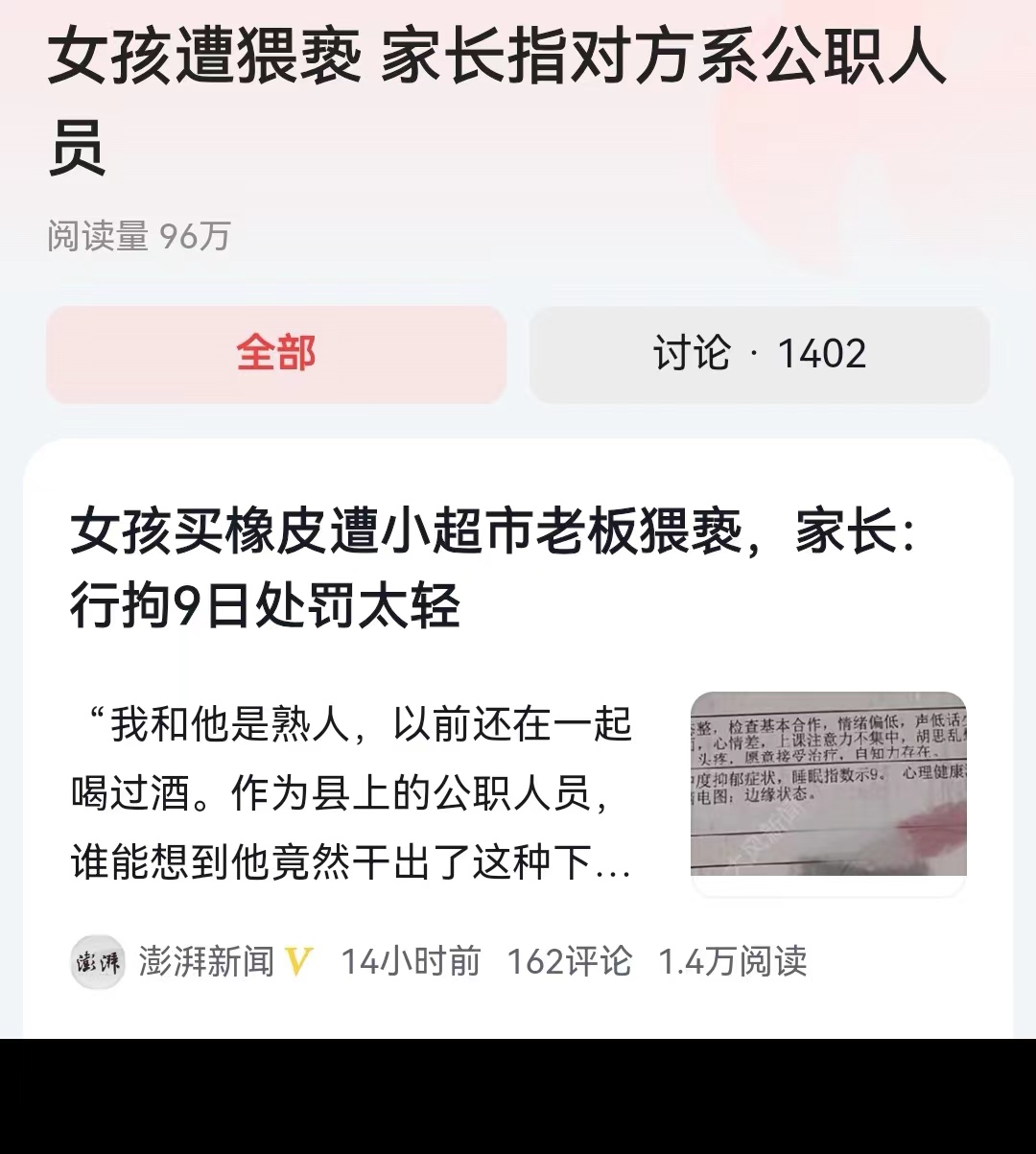 要知道店老板贾某与女孩父亲还是朋友,他们还多次喝过酒,相互都认识。事后警方处以治安拘留9天的处罚。受害者一家认为处罚非常轻,应当追究刑事责任。现在申请行政复议。事后女孩出现应激创伤障碍症状。在11月4日,《医院门诊病历》显示,辅助检查,抑郁自评示中度抑郁症状;心理健康测试:临床指向:恐怖症。特殊脑电图:边缘状态。诊断:抑郁状态。