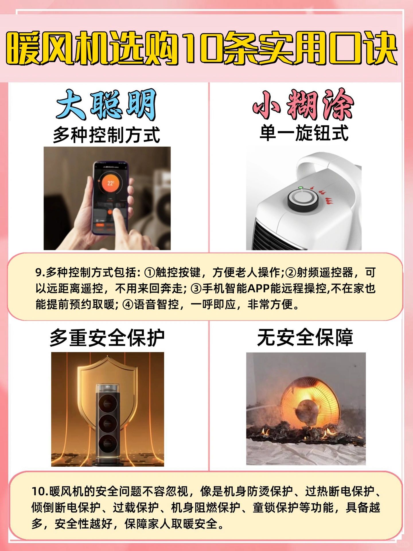 [一R][零R]选多重安全保护的,取暖器的安全问题不容忽视,比如机身防烫、过热断电、倾倒断电、童锁等都要具备,特别是家里有宝宝、养宠物的。