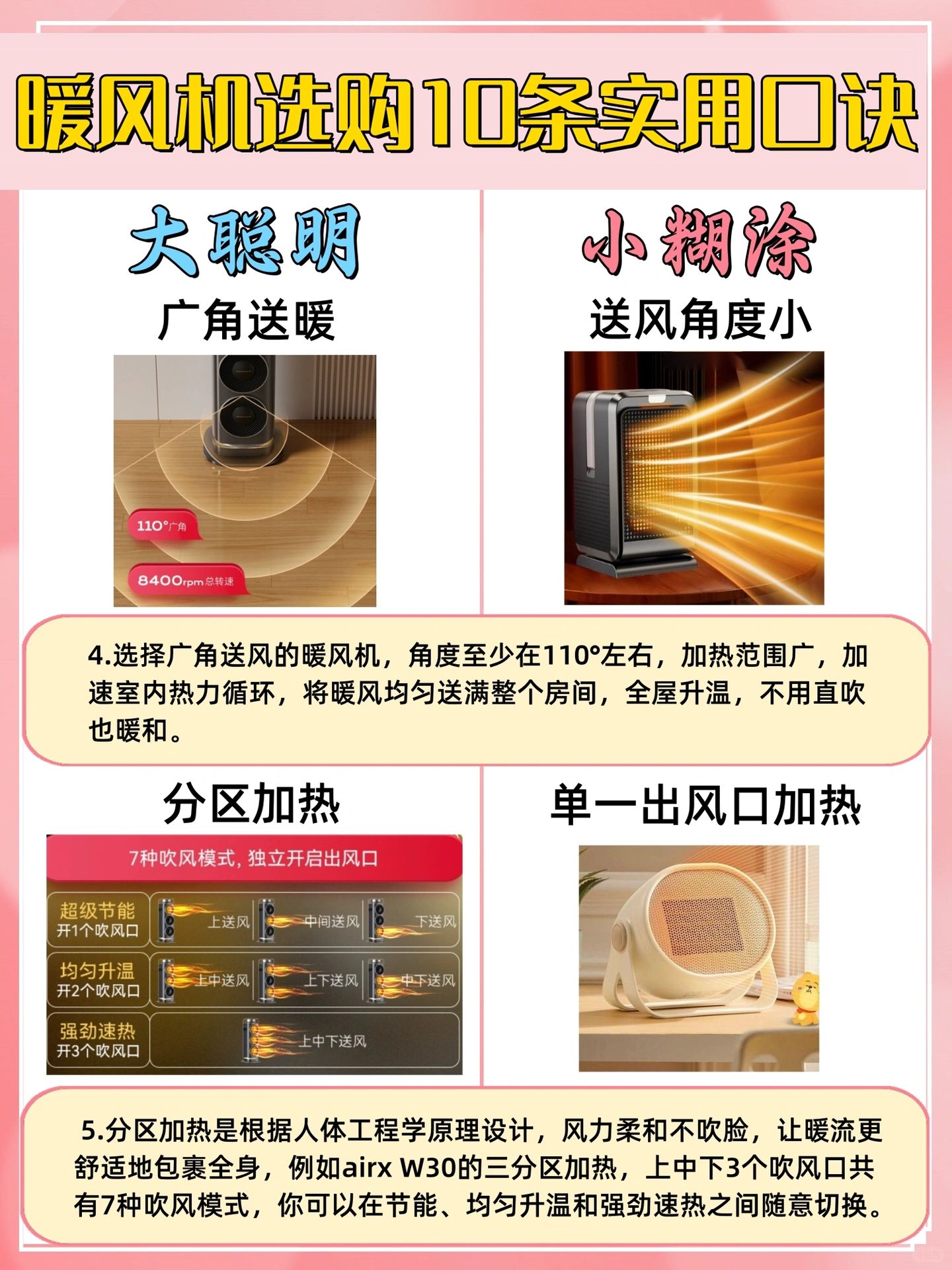 [五R]选分区加热的,尽量选有多个出风口的,可以实现更多吹风方式,满足不同的取暖需求