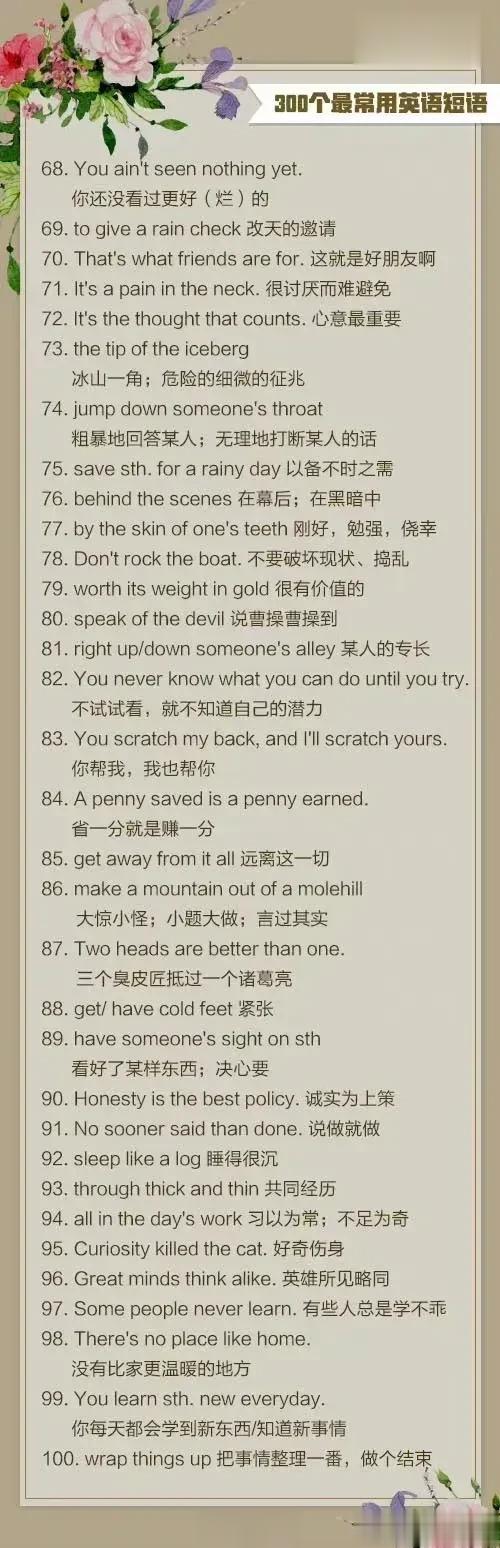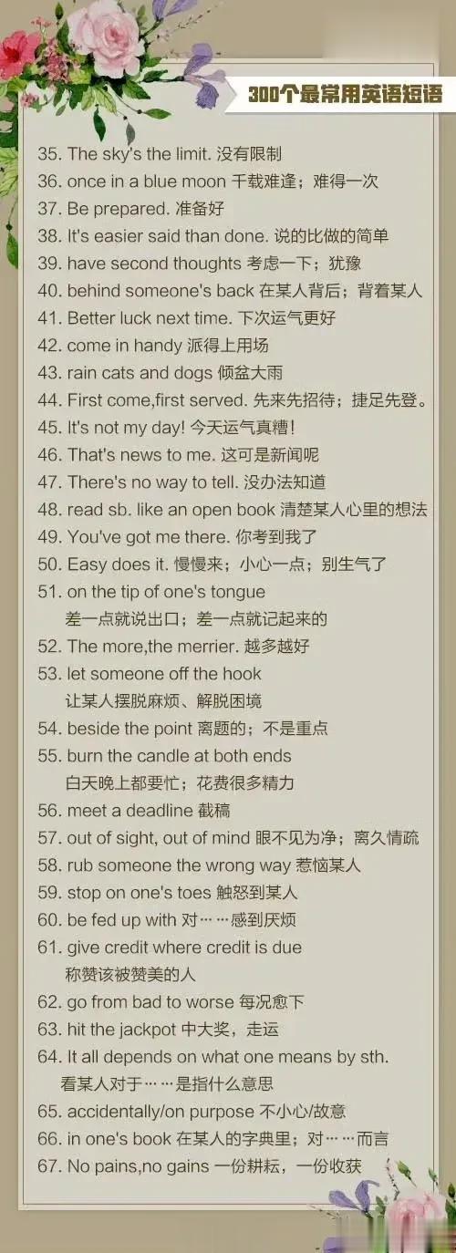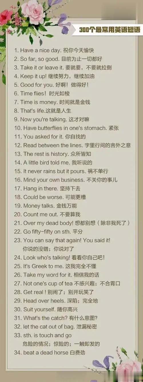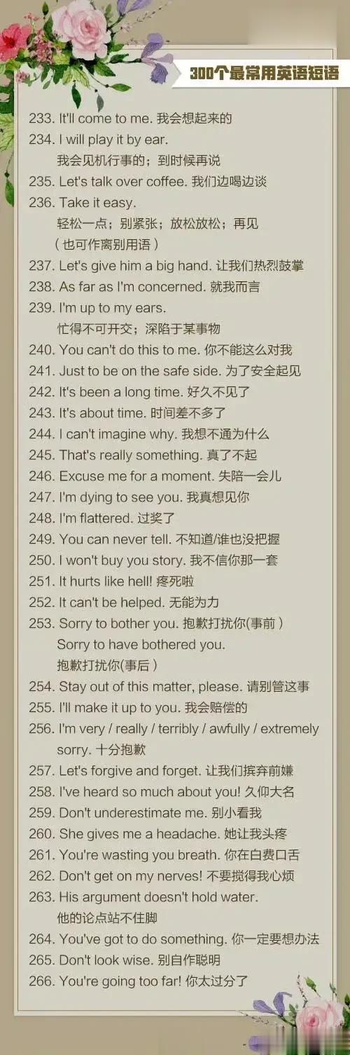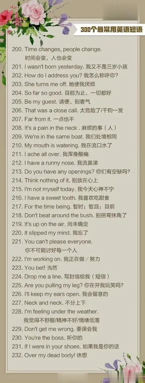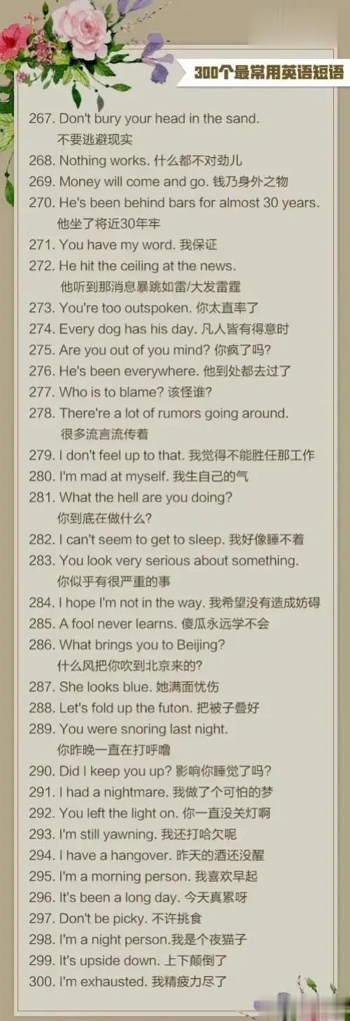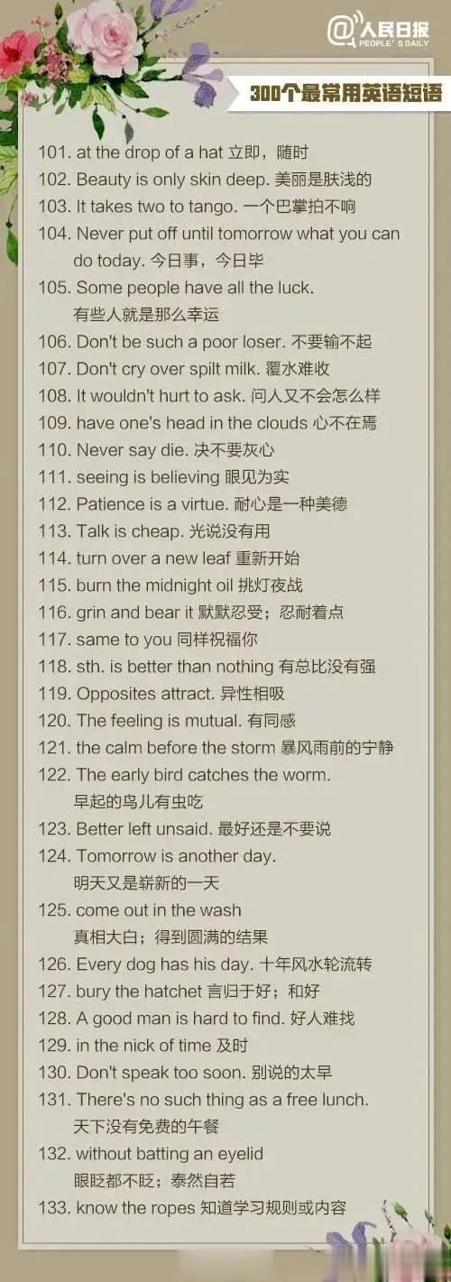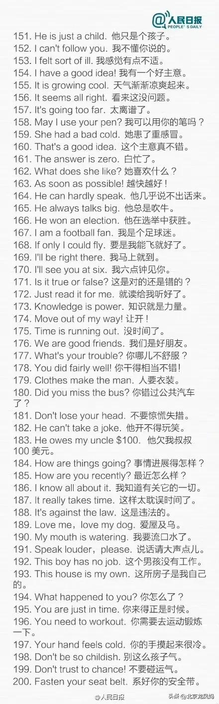 还有比人民日报更贴心的吗?拯救中国式哑巴英语,简直太实用了。和老外交流常用的700+句地道口语,打印出来,让娃每天学几句,轻松告别哑巴英语。赶紧收藏吧,免得以后找不到了。关注我,分享更多实用知识。