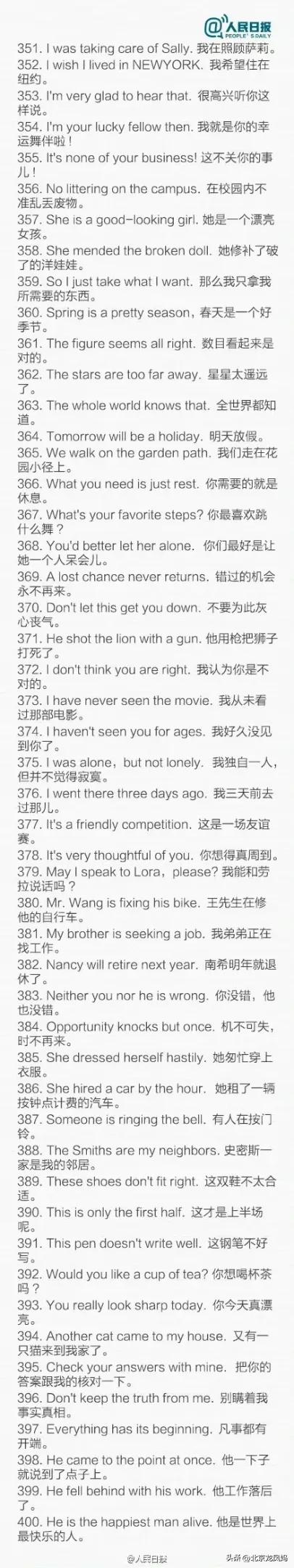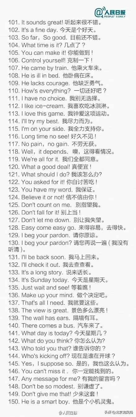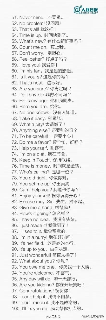 还有比人民日报更贴心的吗?拯救中国式哑巴英语,简直太实用了。和老外交流常用的70