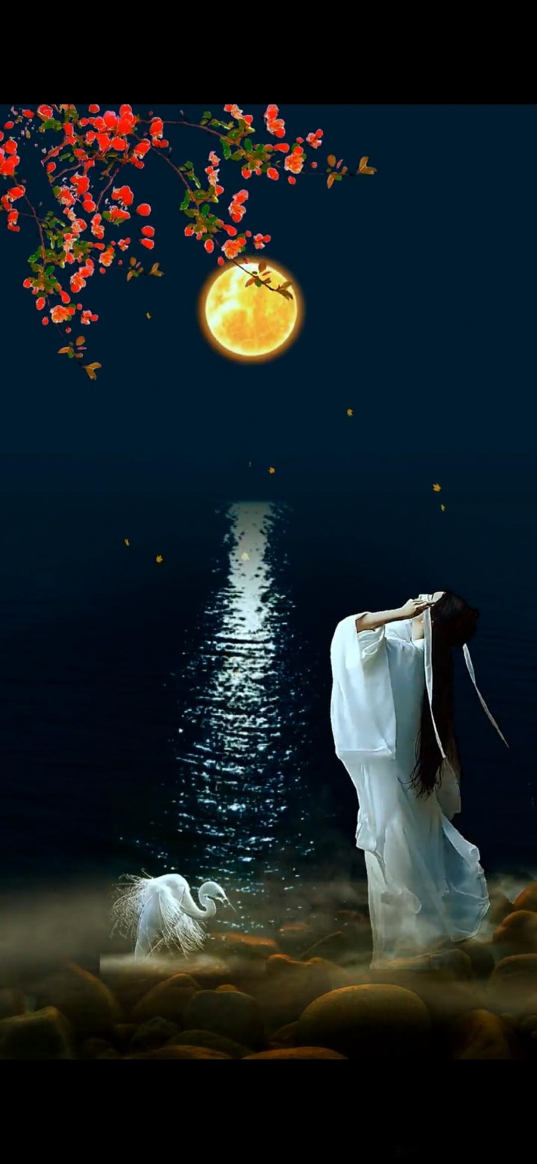 #情感# 原创——七绝·白鹭水面风声吹鬓影,烟中月白弄衣纹。芦花深处眠初稳,惊起