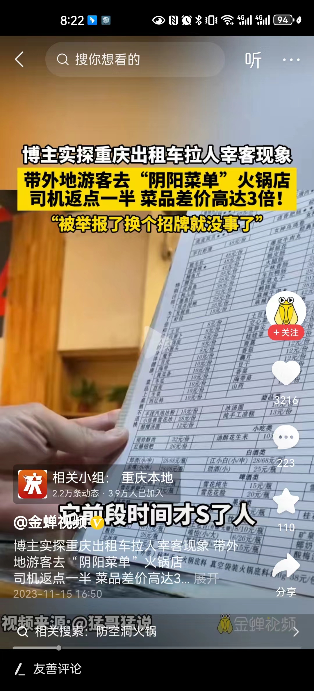 自媒体博主深入探访重庆司机与火锅店勾连的黑幕。但凡上了出租车,有些不良司机但凡知道游客对重庆不熟悉,就开始推荐旅行社和火锅店,将游客带入不良旅行社,将游客带入欺诈的火锅店。如果游客已经有了做好功课的目标,火锅店就开始诋毁,那火锅店最近死了人或者其他负面事情,最后将游客带入合作的欺诈火锅店。