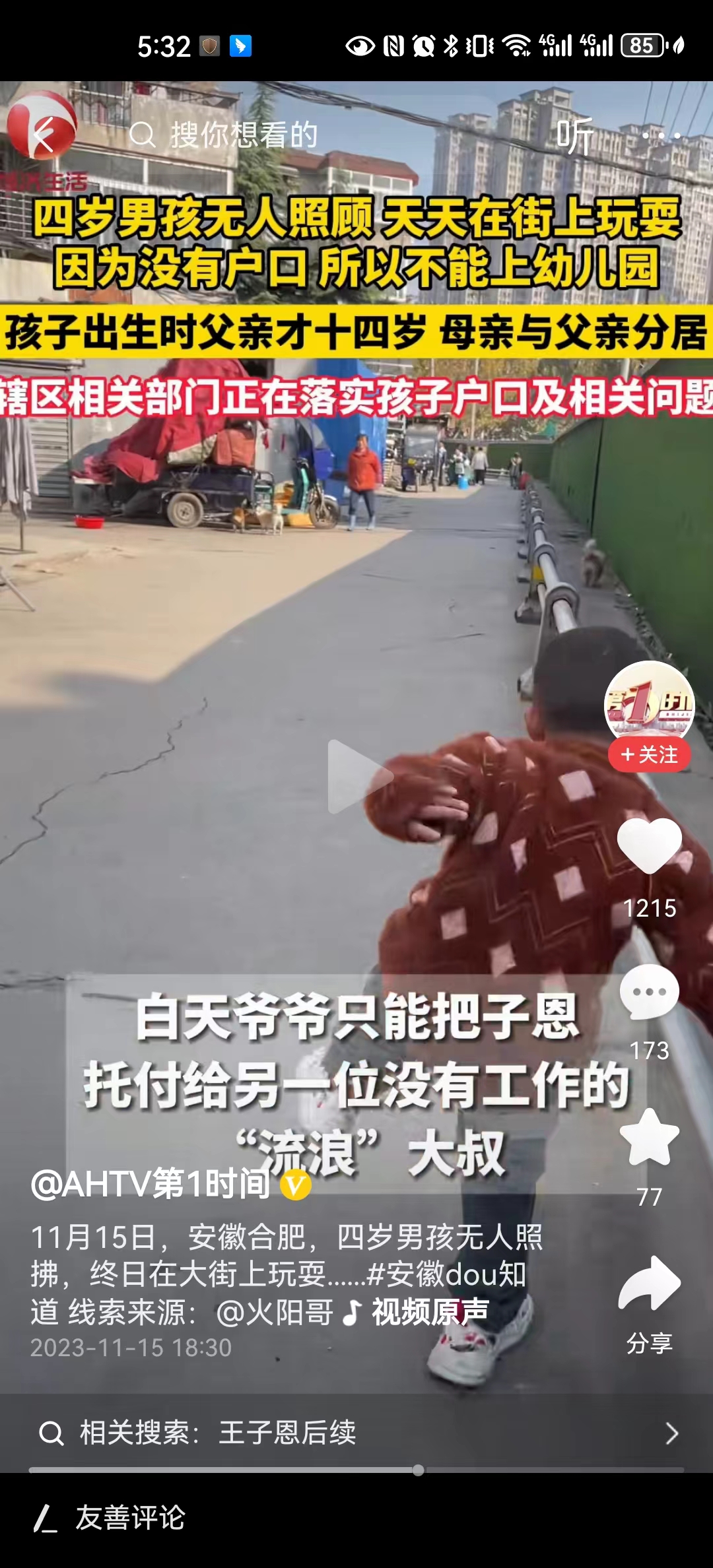 在安徽合肥的街头,有一个4岁男童四处玩耍,既没有上幼儿园,也没有大人照料。饿了就朝周边卖吃的商户要一点东西吃,这周边所有的人都认识他。问他的原因,原来在这名男童出生的时候,他的父亲才14岁,他的母亲能有多大呢?现在也不可得知,但估计也不大。目前男童是归他的父亲和爷爷照顾。