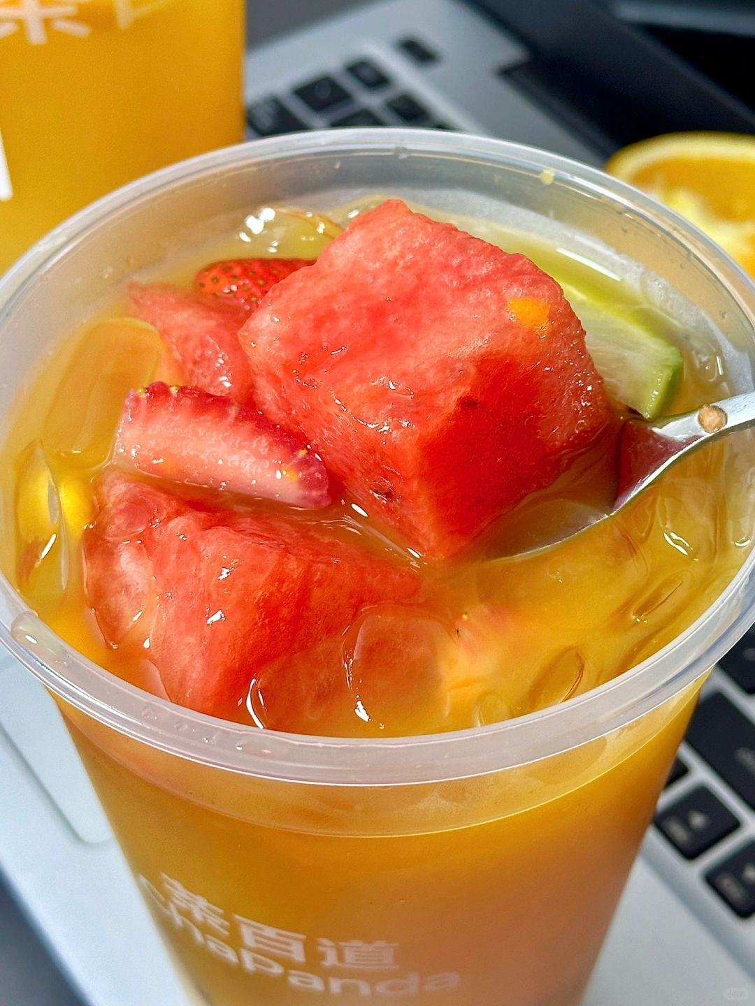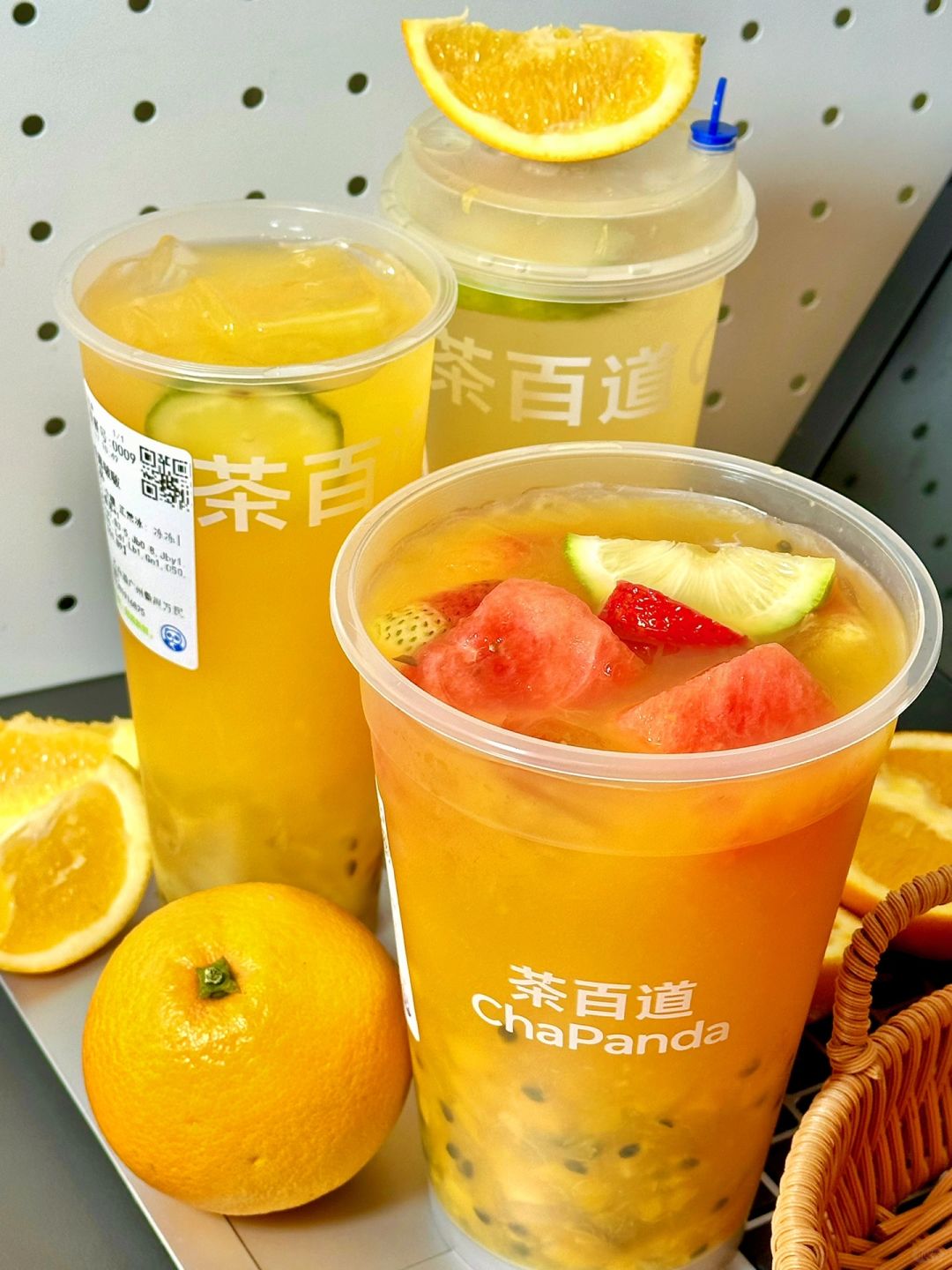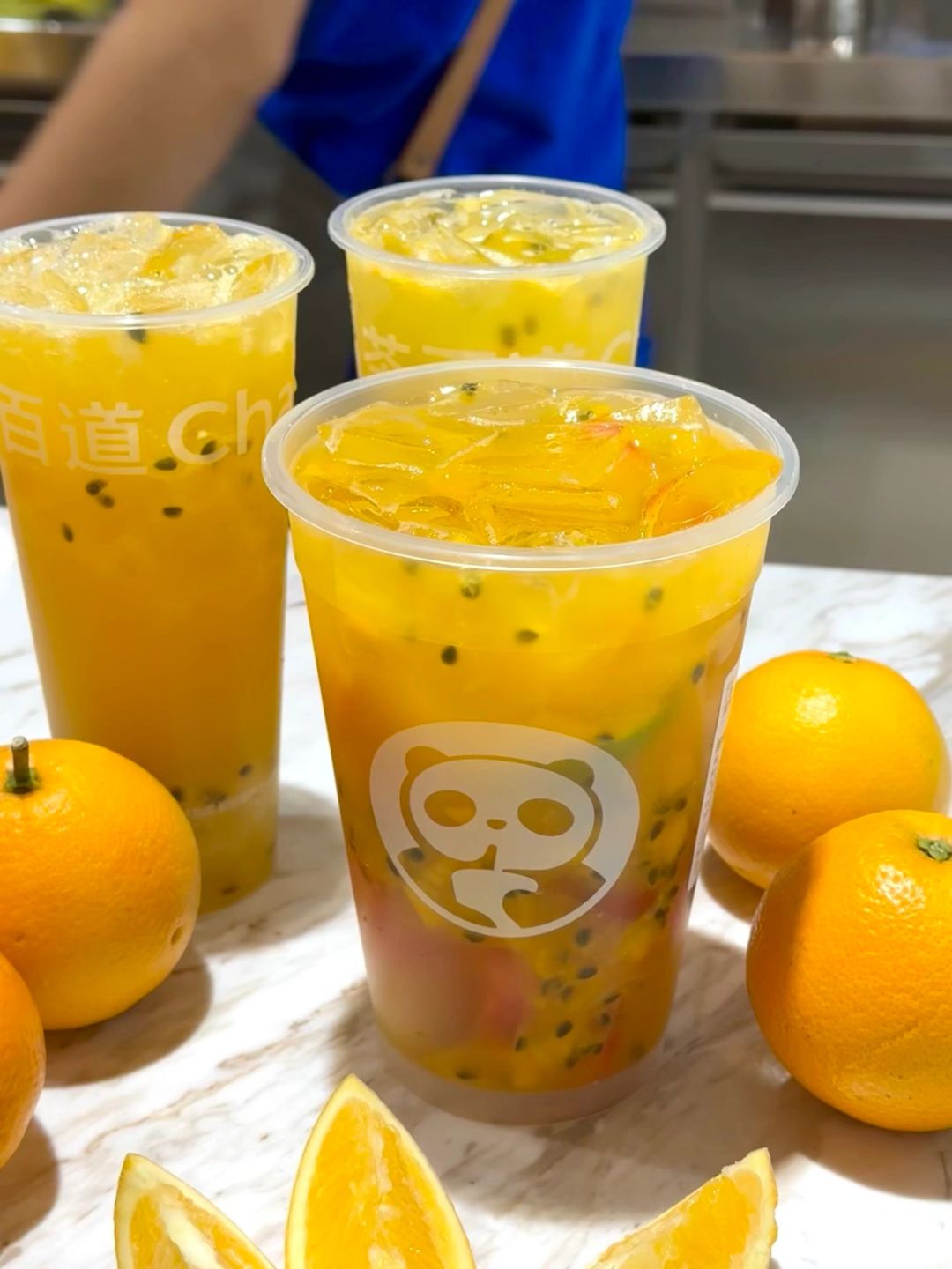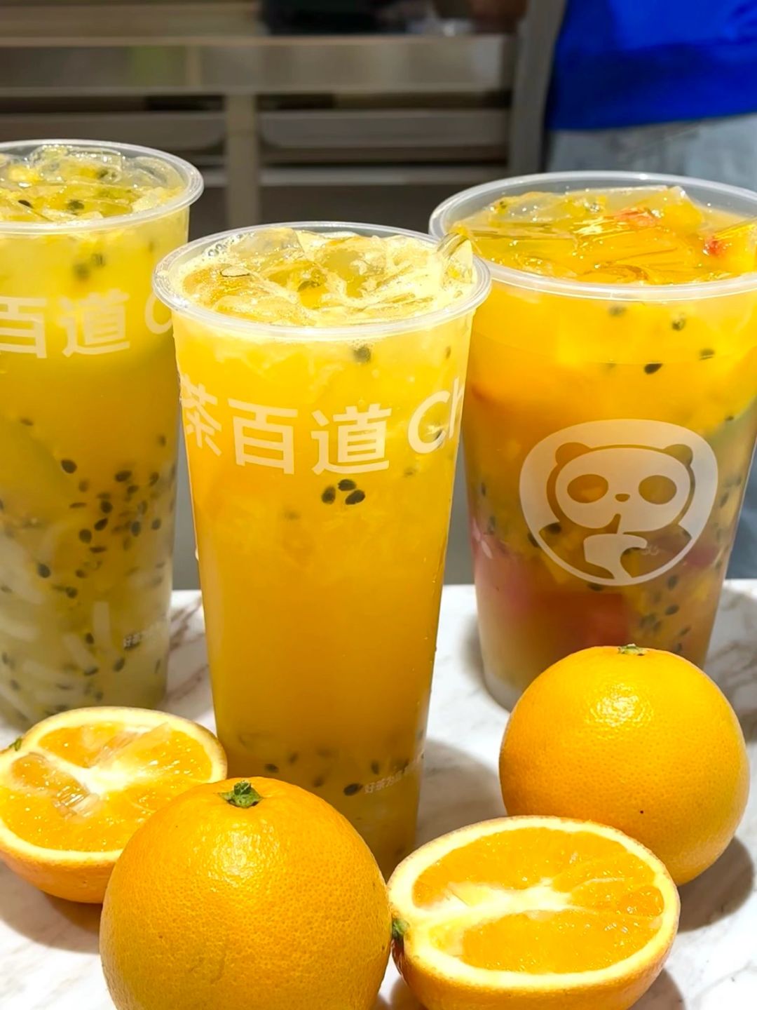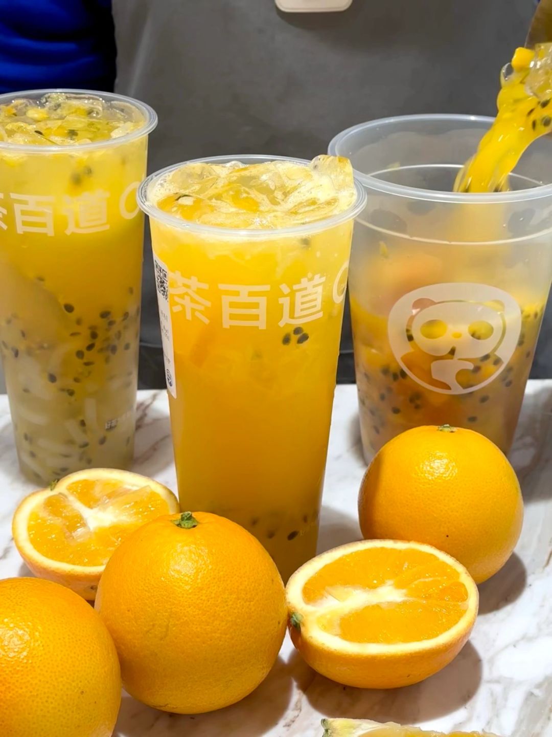 报报报!🍊新品橙露啵啵真的太好喝了! 里面有百香果、西柚和橙子,茶底是七窨茉莉 还有我最爱的脆啵啵!橙子的香味巨浓郁~🥰清甜可口,满满都是果肉💗喝完嘴巴都是香香的~ - [打卡R]超级杯水果茶(百香果) 都是我爱哒~百香果+芒果+🍓草莓+西瓜 搭配上七窨茉莉茶底和佛手柑冻冻 足足1L,清爽又香甜~ - [打卡R]椴蜜百香绿茶 椴树蜂蜜搭配黄金百香果,果肉细腻多汁 蜂蜜自带着花香清甜与百香果平衡了口感~ 还能吃到脆啵啵🥰椰果还有佛手柑冻冻 别提多满足了!姐妹们快试试![派对R][派对R]
