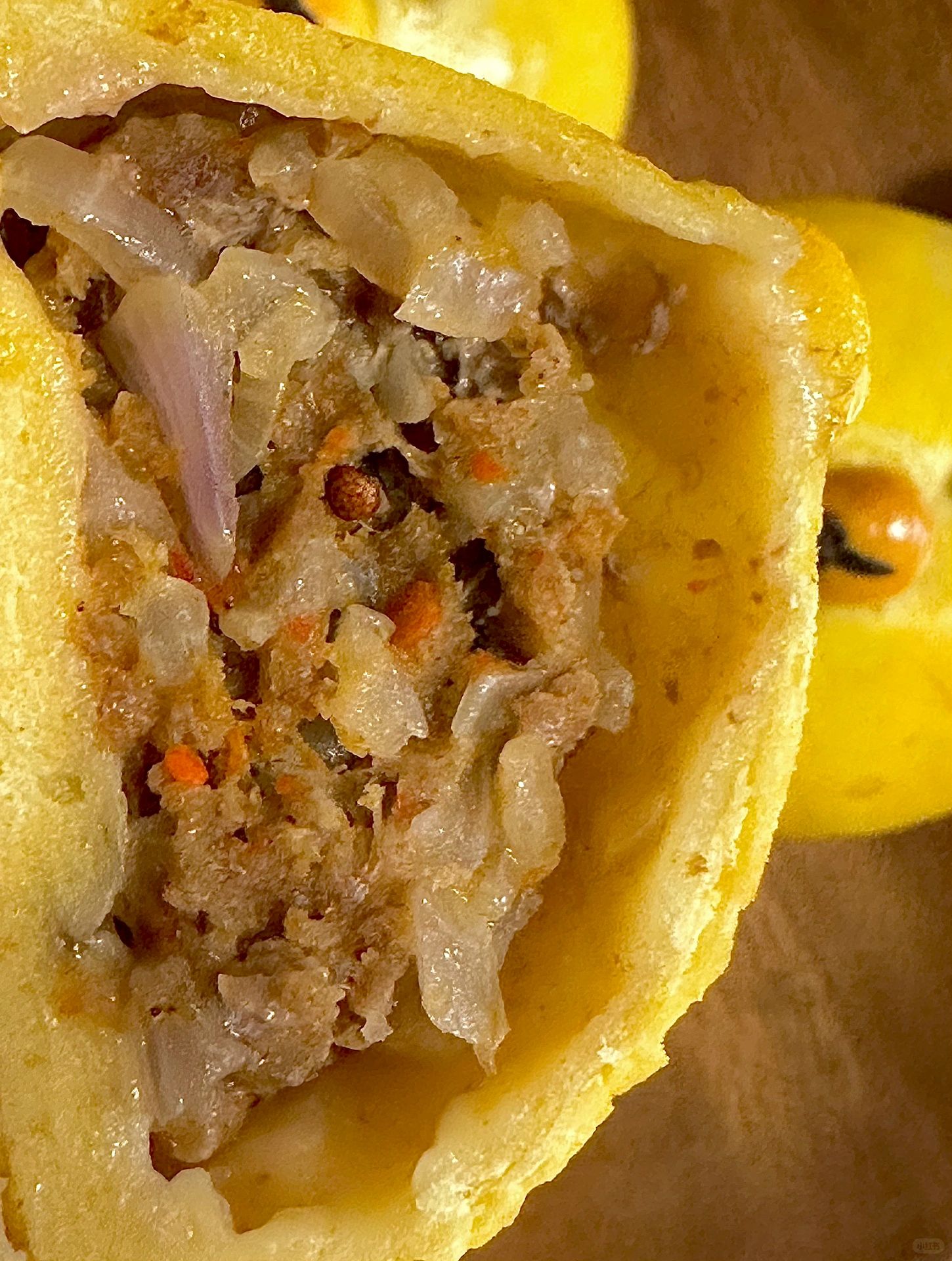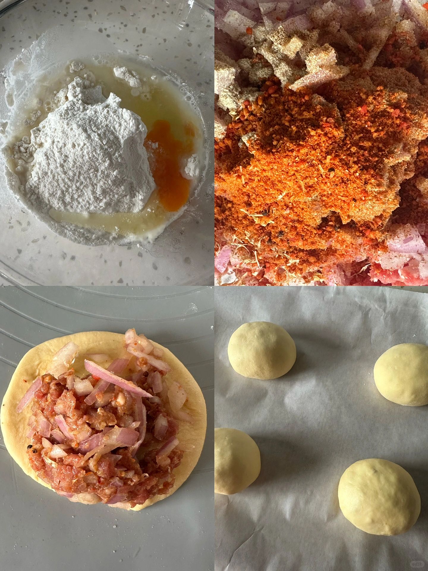 馅:120g羊肉、100g洋葱、2g孜然、1g胡椒粉、6g烧烤料、少许盐