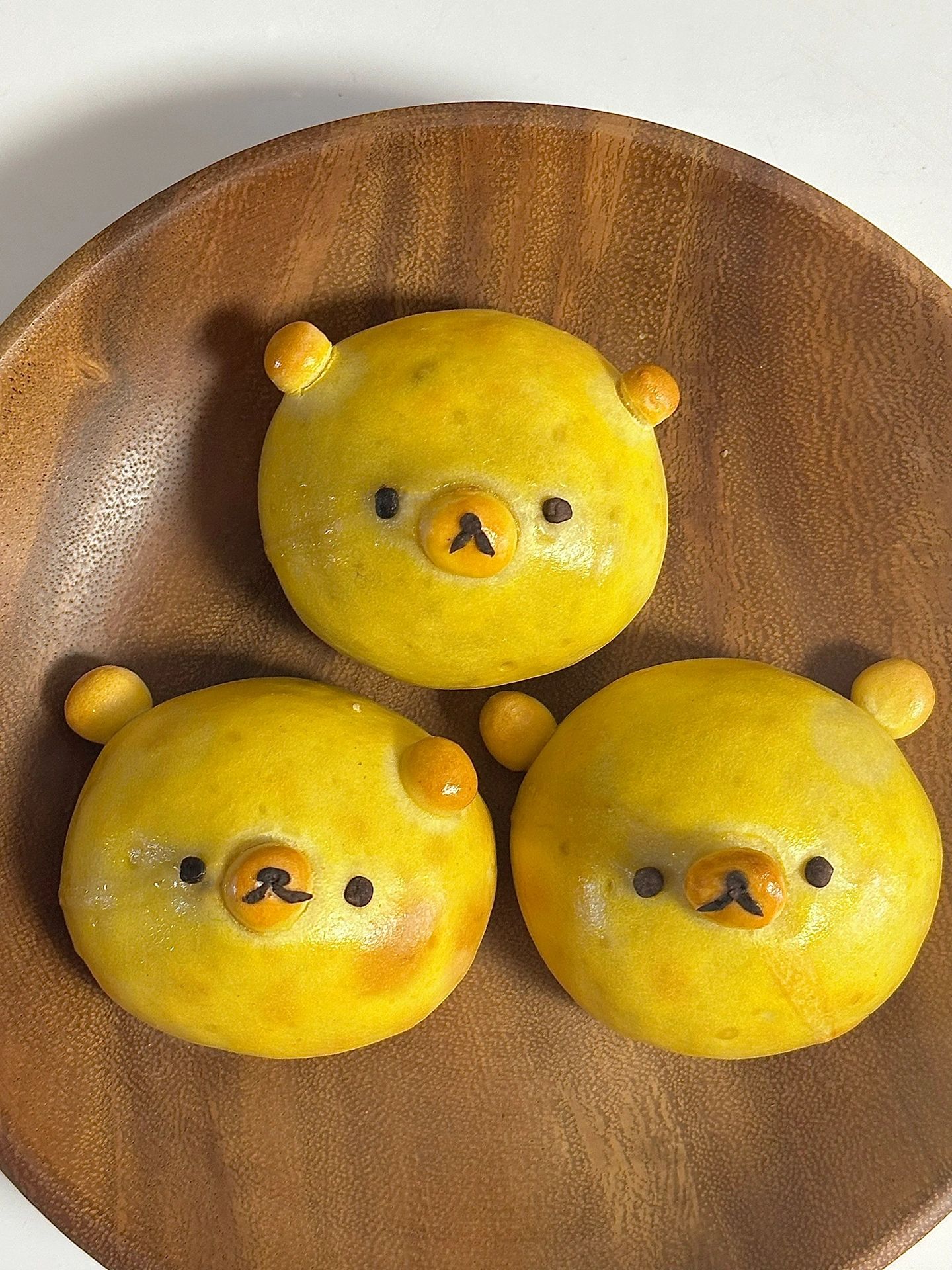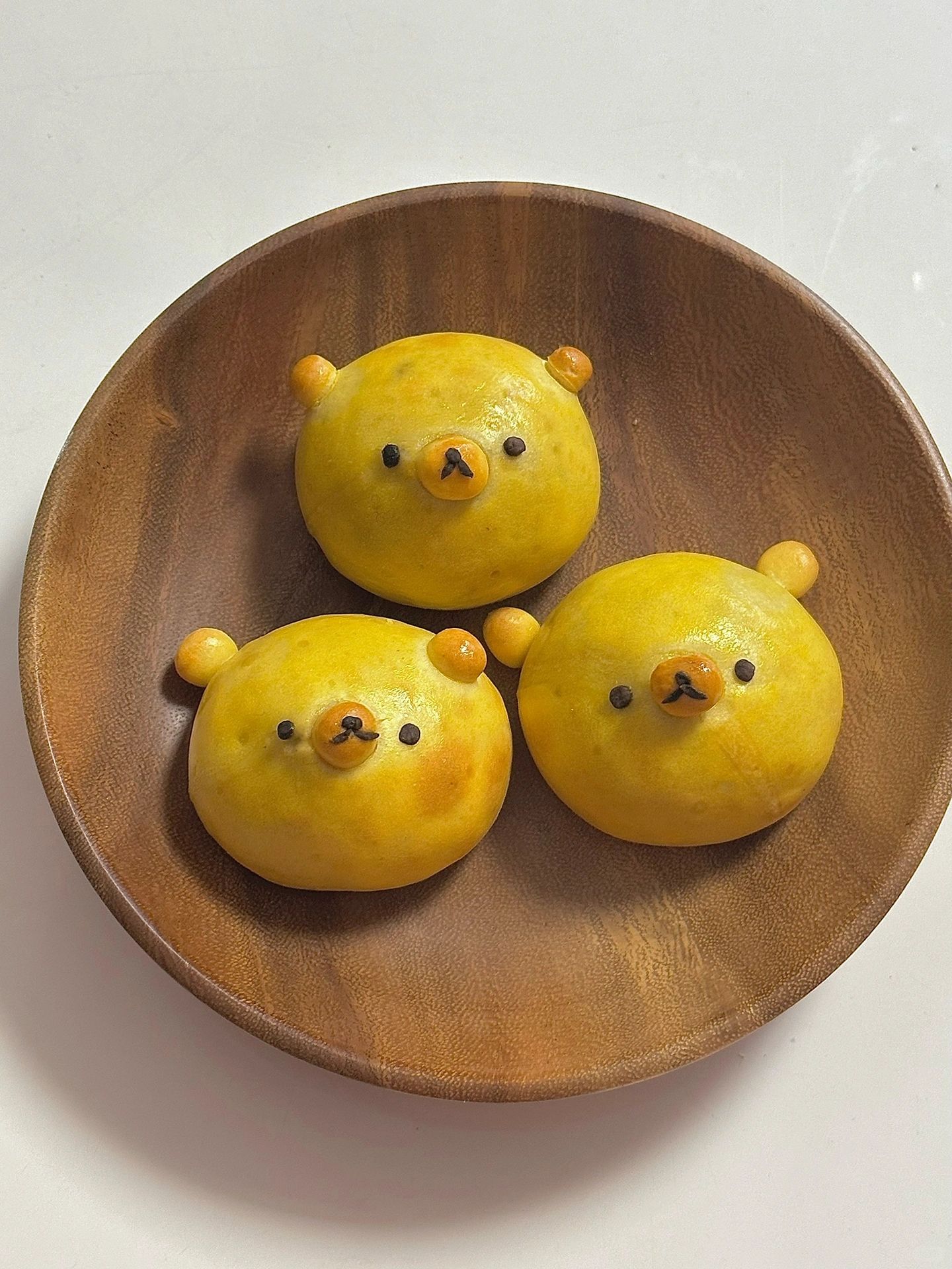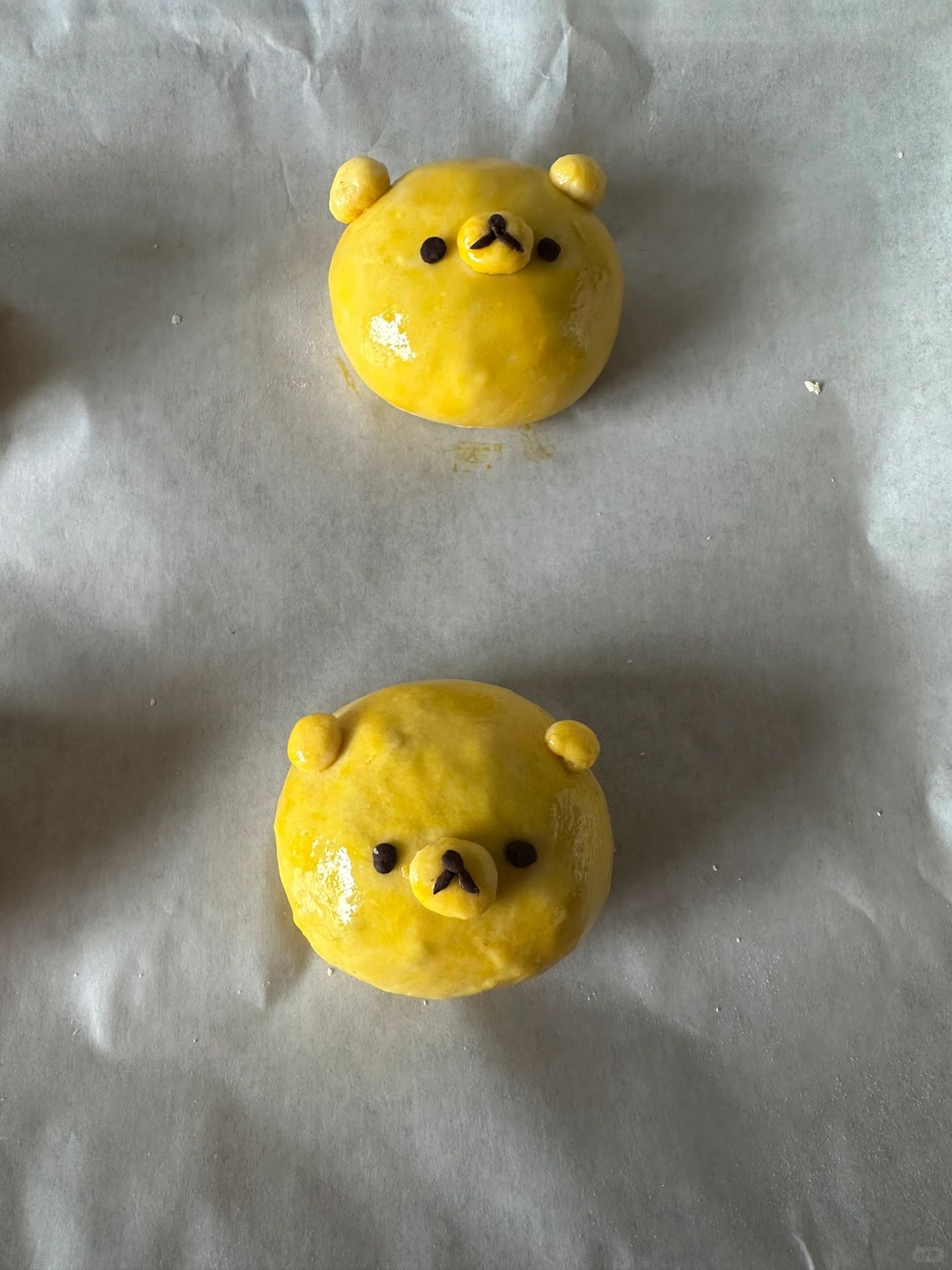 4.装饰上表情,刷蛋液,200度烤25分钟