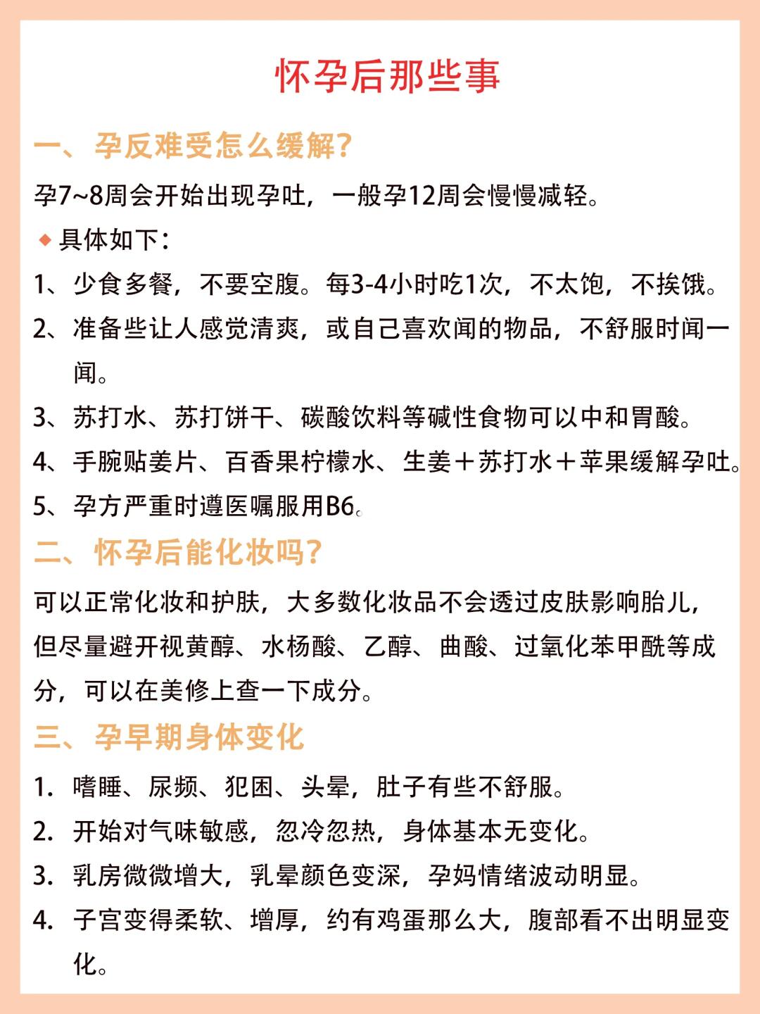 👉第一次怀孕的准麻麻~ 刚测出两条杠时,是不是又兴奋又紧张❓ 接下来要做什么是否也很迷茫❓ 有什么要注意的❓ - 🌟今天鱼儿麻麻一篇文讲清楚,怀孕后要做什么 ✅知道怀孕后要做的事 ✅怀孕后不要做 ✅怀孕后放心做 ✅准爸爸伤胎的6大行为 ✅怀孕后那些事 1⃣孕反难受怎么缓解? 2⃣怀孕后能化妆吗? 3⃣孕早期身体变化 4⃣孕期营养补充 5⃣孕期食物补充 6⃣孕期慎吃食物 7⃣孕期适当的运动 8⃣临产信号灯 9⃣孕期注意事项 ✅超全产检时间表