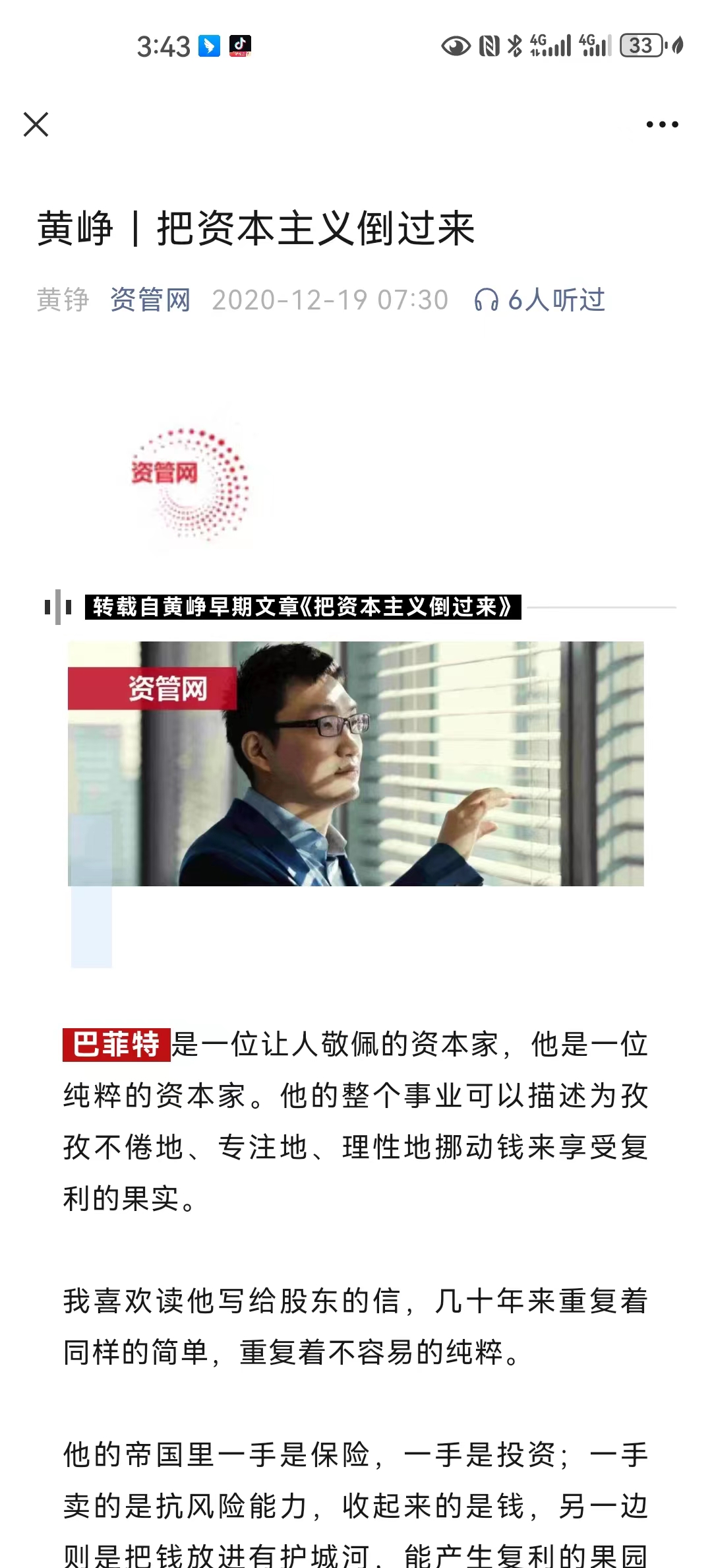 黄征通过研究巴菲特的投资逻辑,得出的巴菲特,一手卡着保险,通过向穷人售卖“确定的未来”,通过保险汇集资金,另外一方面用资金再投向产业,获取资本的增值,利用时间能够得到复利的利润。这样就实现了资本的长期和短期的现金流平衡,以及长期的盈利。那么他的思考是为什么不能将这个资本倒过来呢?