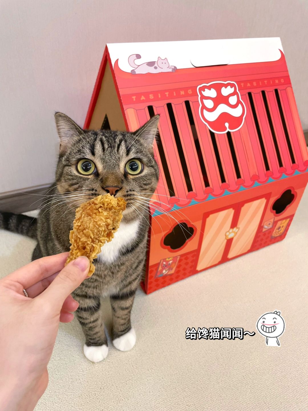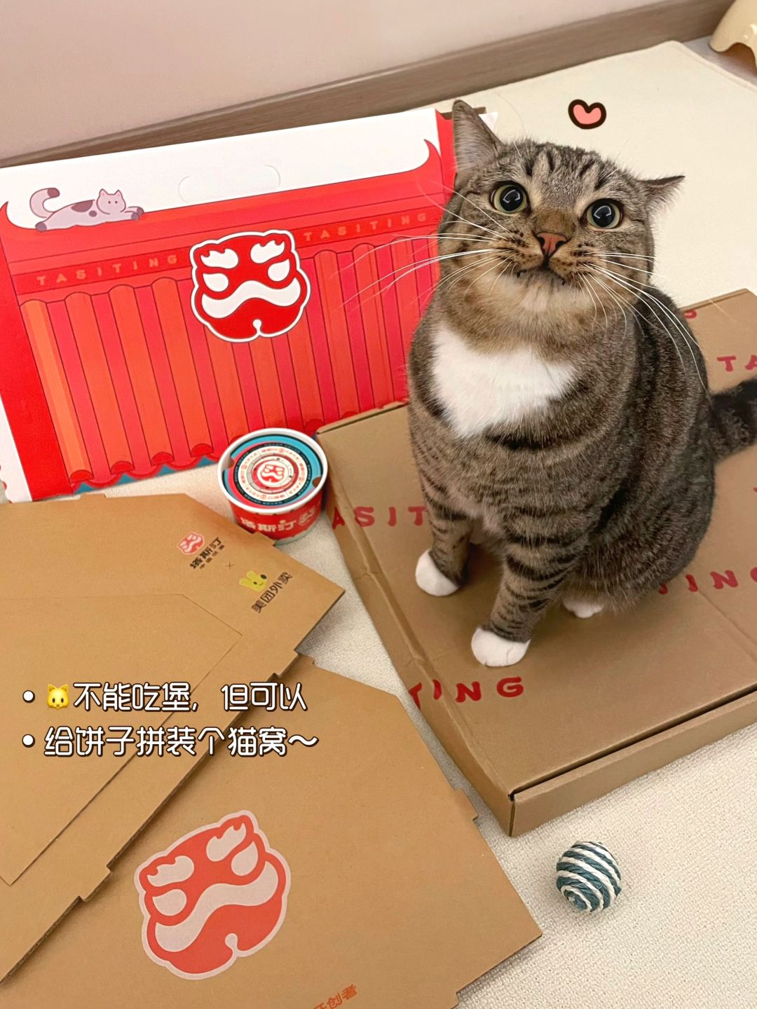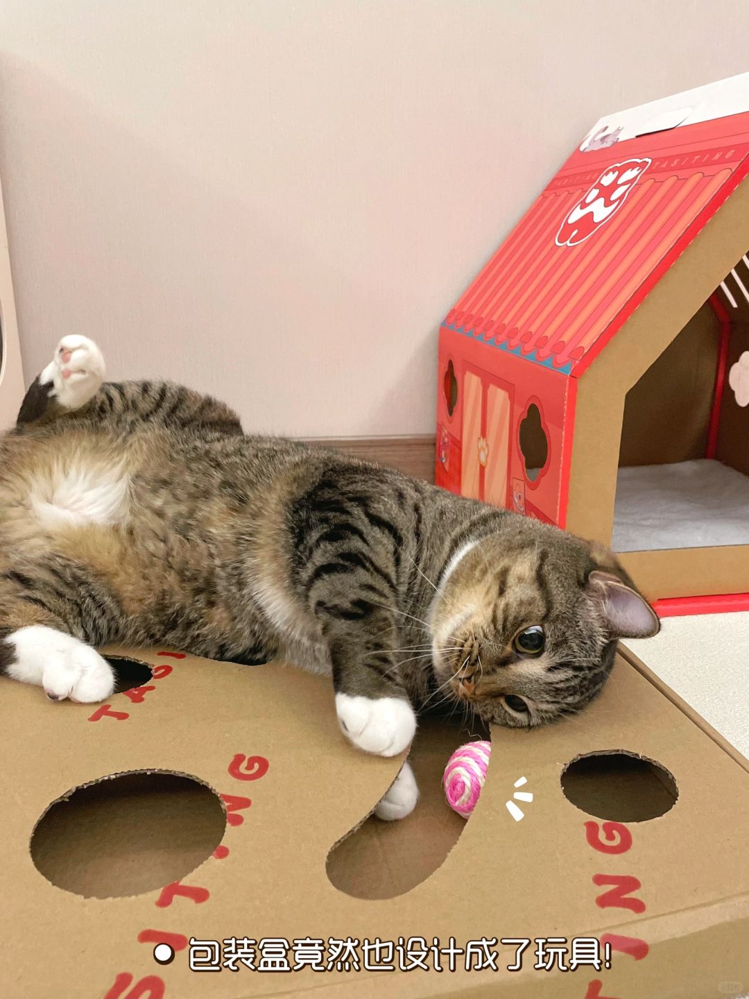 (ps:包装纸盒拆出来还能变身猫猫玩具!饼饼对这一“餐”看起来也是相当满意[doge])
