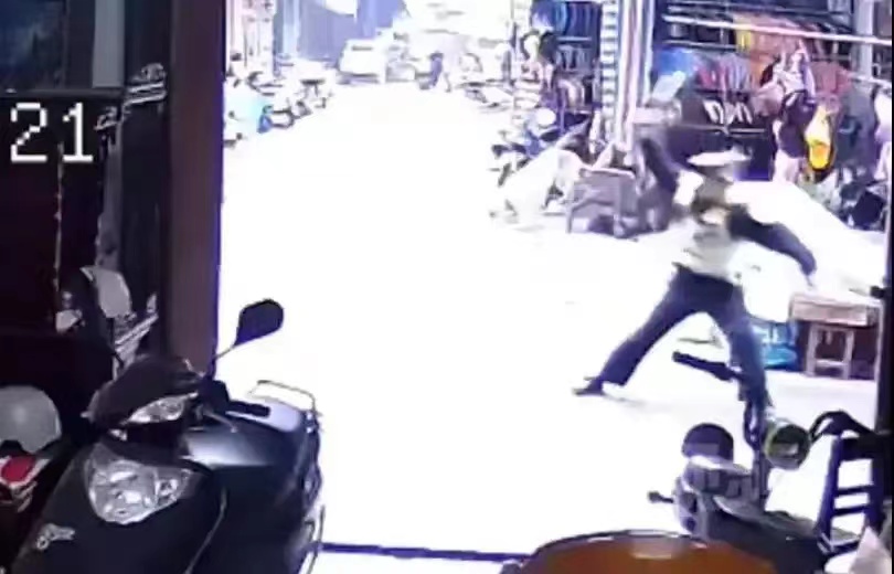 在广西省贺州市,一名交警正在路边执勤,他手里拿着警棍,注视着每一辆即将经过他身边的电动车。可能他注意到一辆电动车没带头盔,还准备冲过去。也早早的拿起警棍做好准备。在电动车经过的那一刹那,猛的抡了上去。电动车是停下了,电动车驾驶员也摔在地上痛苦的呻吟,最后送医治疗。