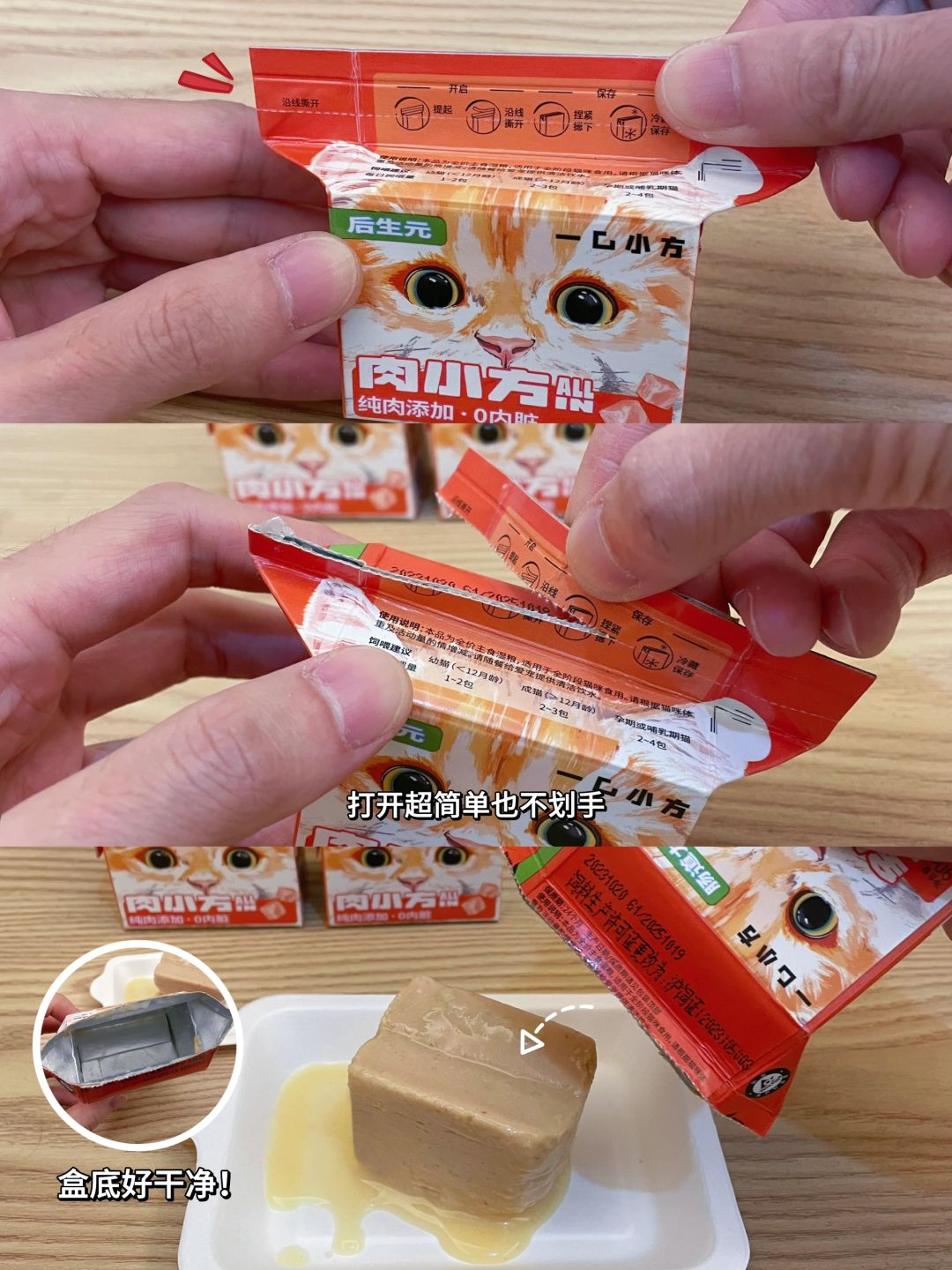 而且包装盒真嘟好体贴,一次吃不完,盒子一摁就封好了 (6盒装送的一次性餐盘本懒人铲屎官也很爱,不用洗碗了![哭惹R])