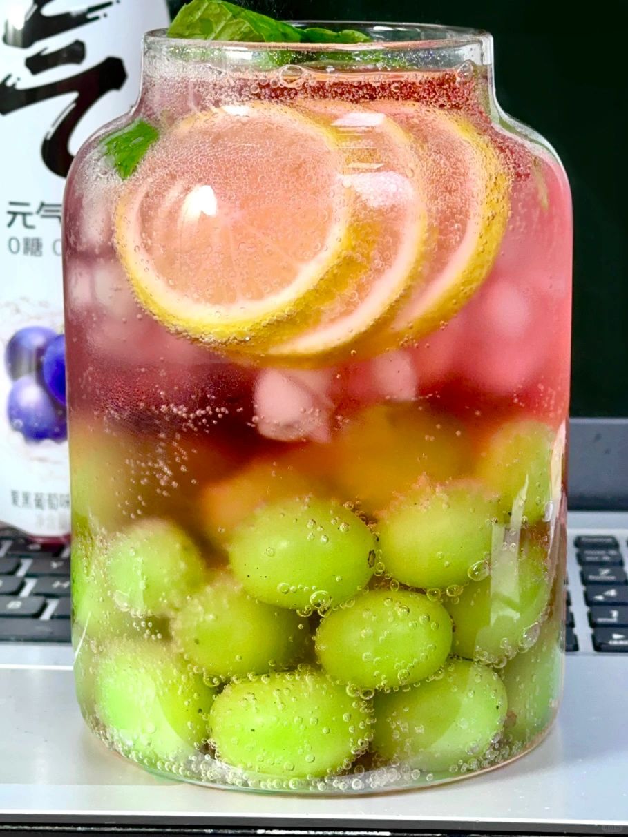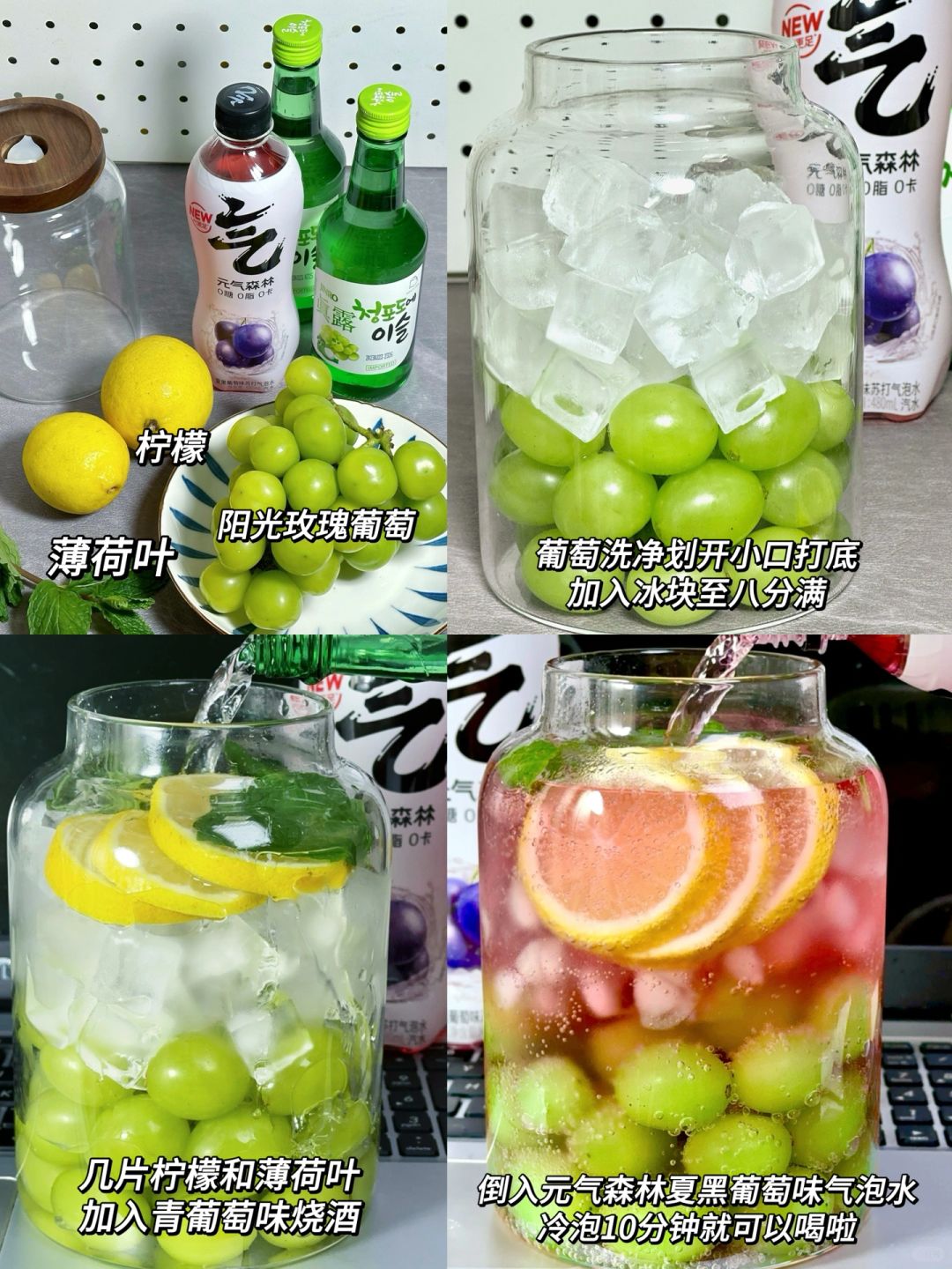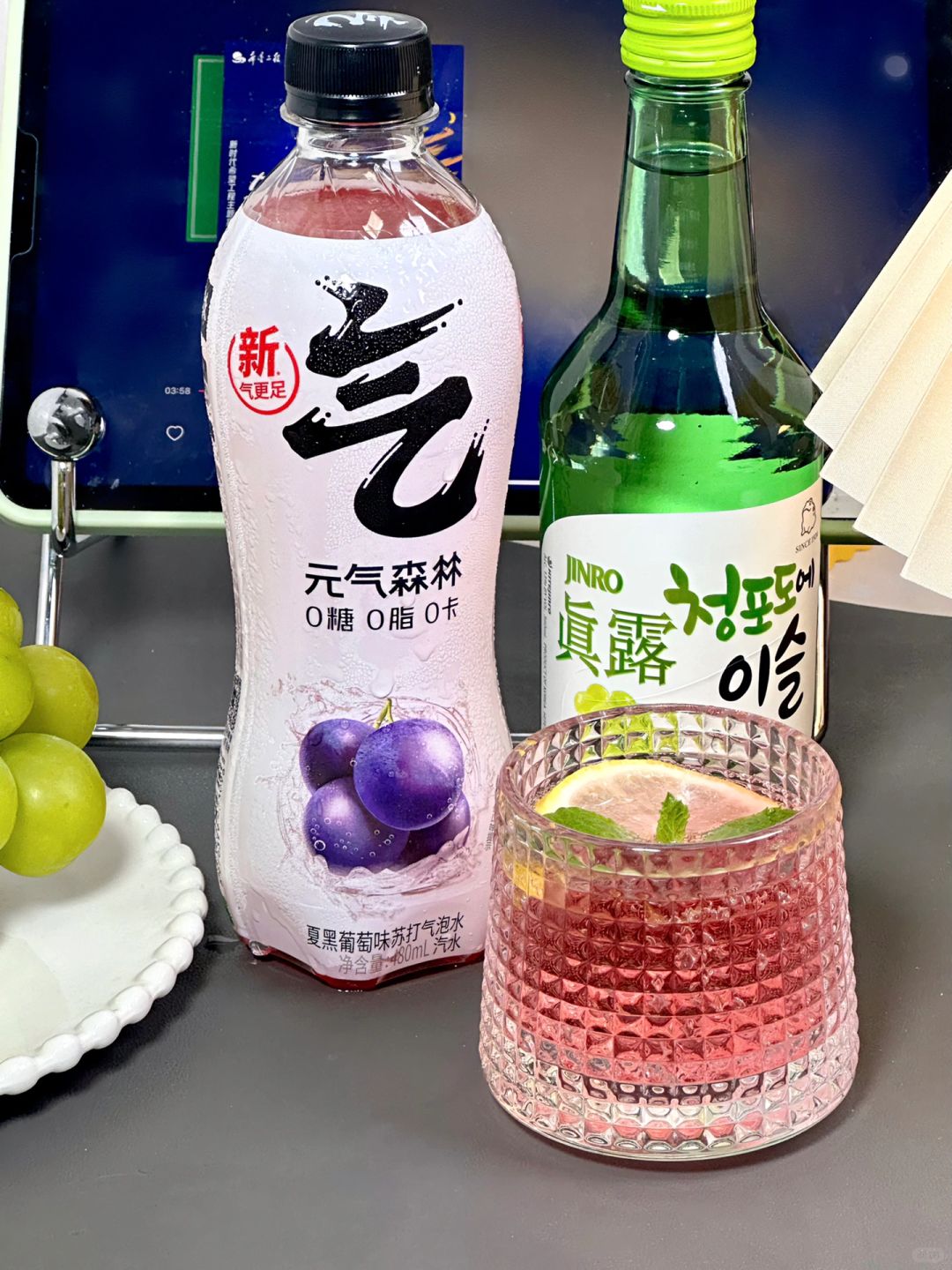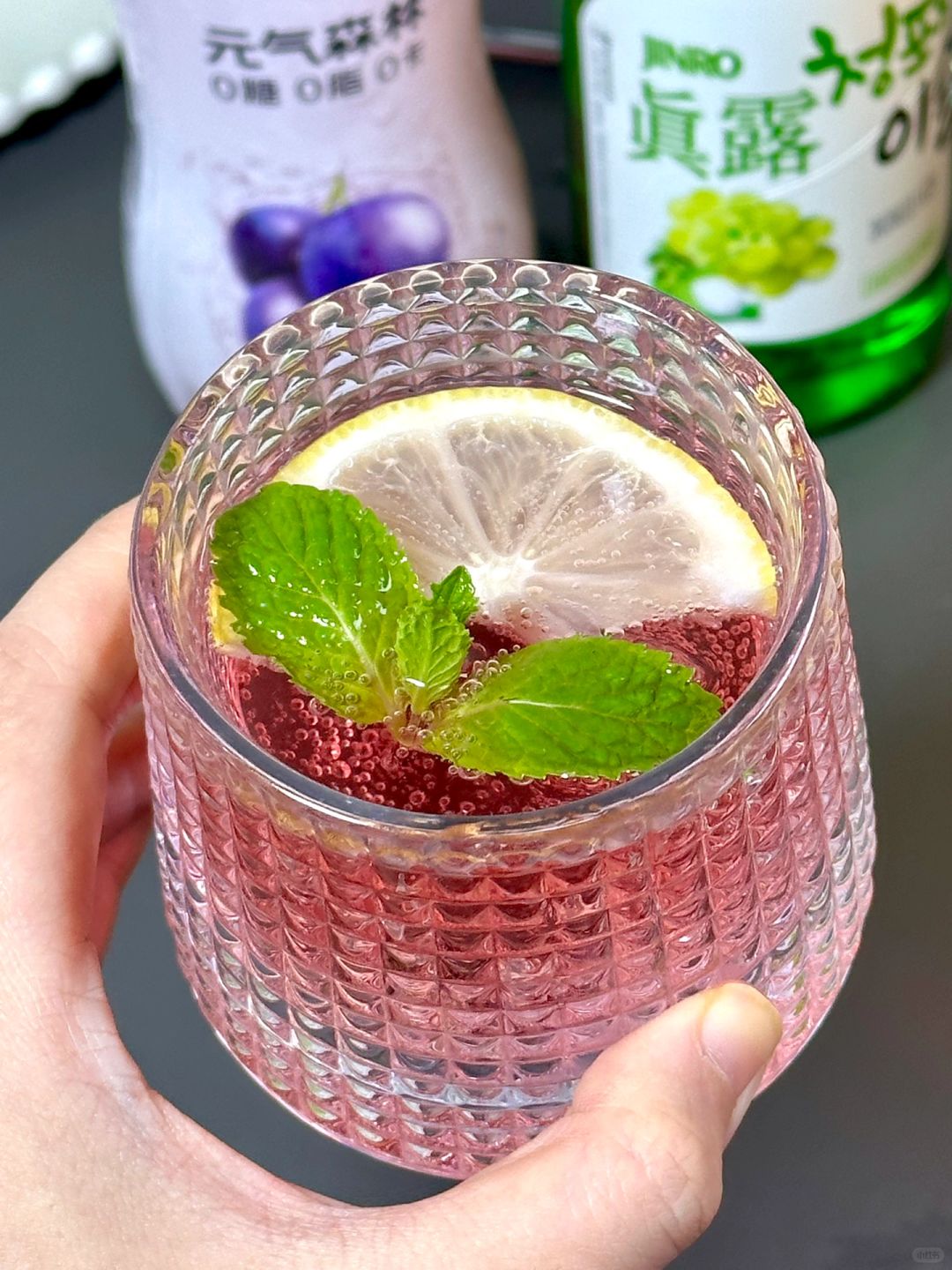 🍇葡萄的果香+薄荷的清凉+淡淡的酒香 酸甜清新,冬天来一口暖暖的~沦陷了... 葡萄味⽓泡⽔➕青葡萄味烧酒➕阳光葡萄➕冰 我按照3:1兑的!真的吼吼喝啊!! 葡萄味很浓郁,气泡感巨足!微微醺 - 俺特意选的是0糖0脂0卡的元气森林气泡水 口感果味很浓郁清爽~ 尊嘟很爱![大笑R]也不会压住酒味 喝起来啥负担也木有!酒鬼姐妹快试试~ . ⚠️(未成年人及孕妇不可饮酒~)