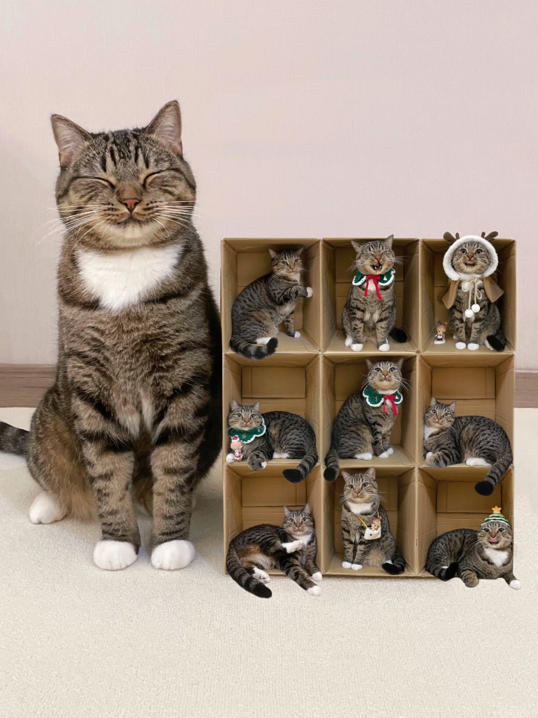 ps:本麻麻还巧手制作了一个猫咪九宫格手办柜[doge],之前就感觉饼饼的动作和表情蛮丰富的,不知道能不能出一套盲盒,大家最pick哪一个?