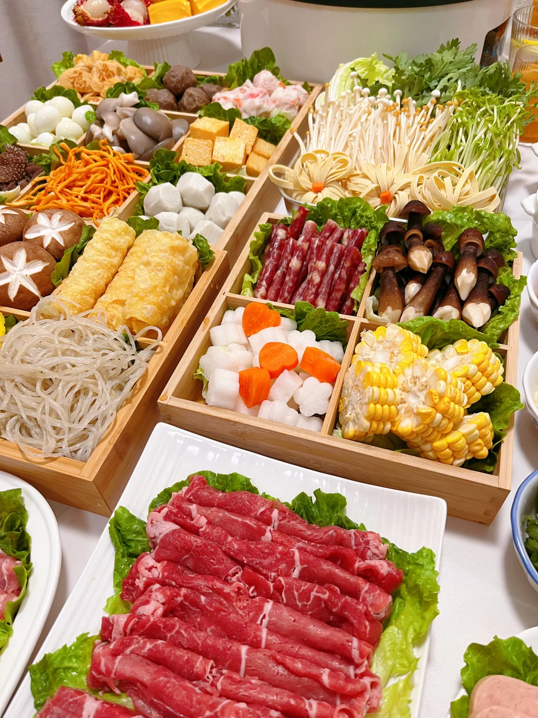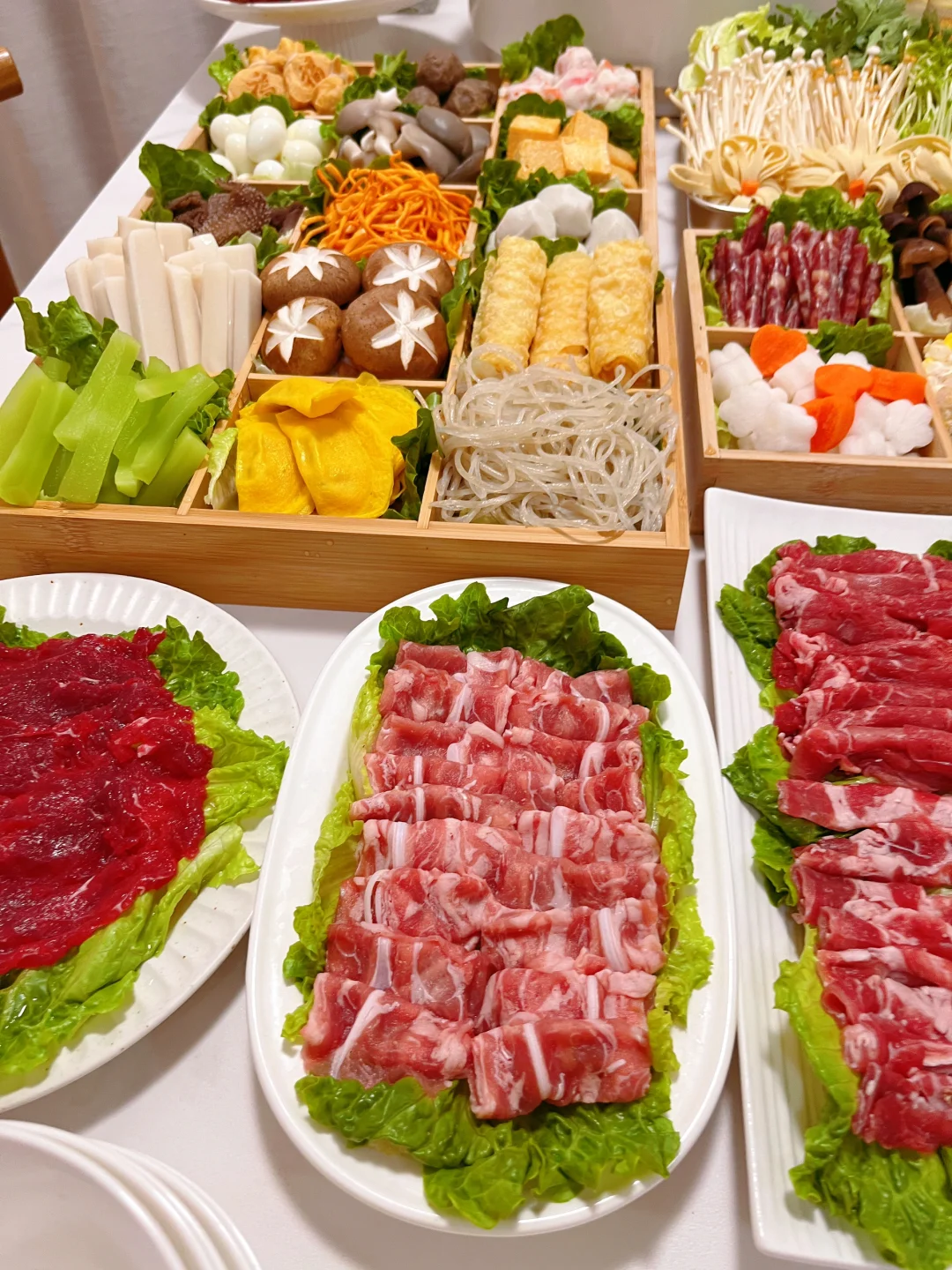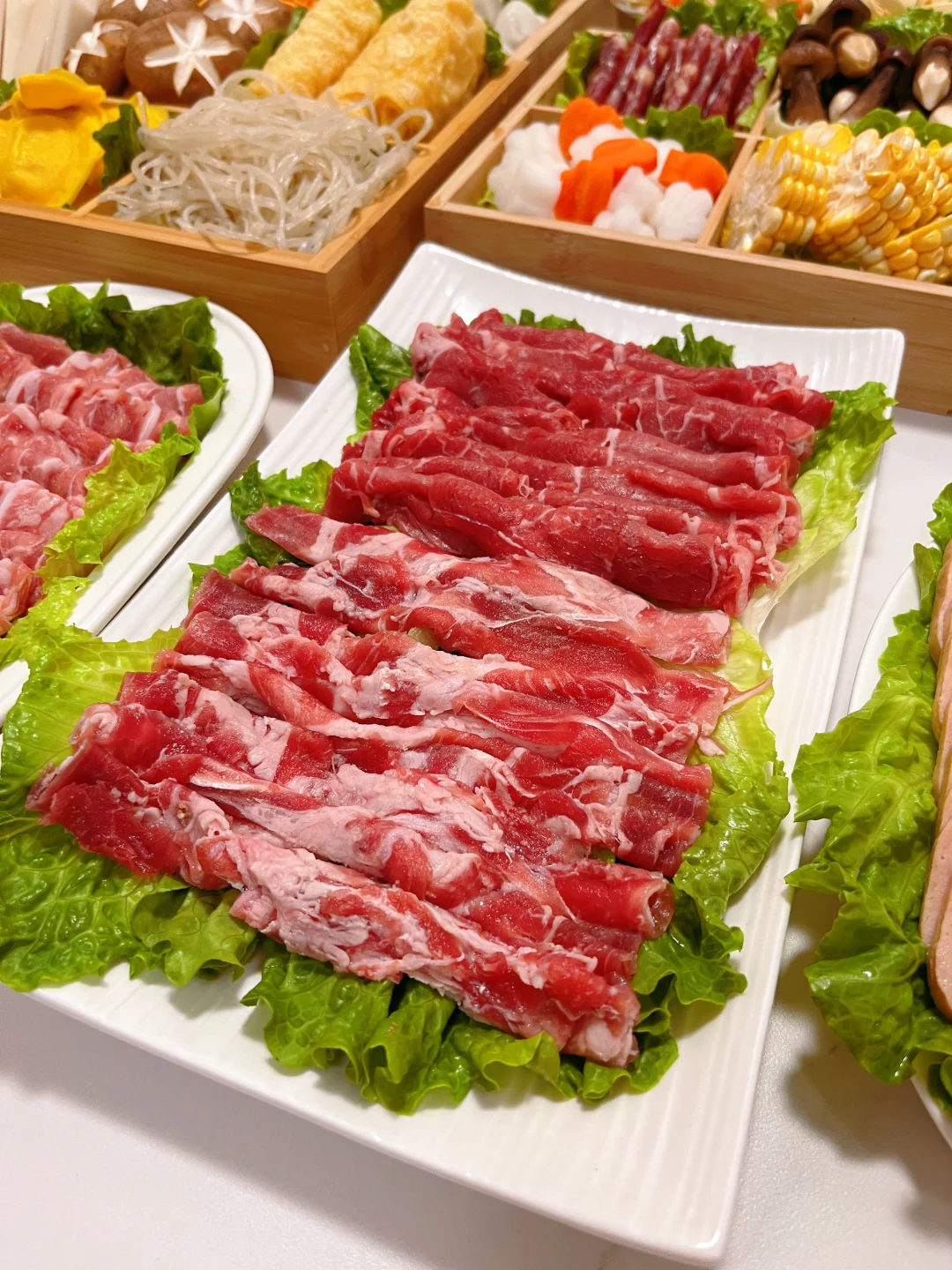 🥩荤菜:牛肉丸|牛筋丸|鱼丸|鱼籽福袋||鱼豆腐|龙虾丸|脆骨羊肉卷|上脑牛肉卷|鹌鹑蛋|牛肉片|羊肉卷|小腊肠|响铃卷|牛百叶|午餐肉