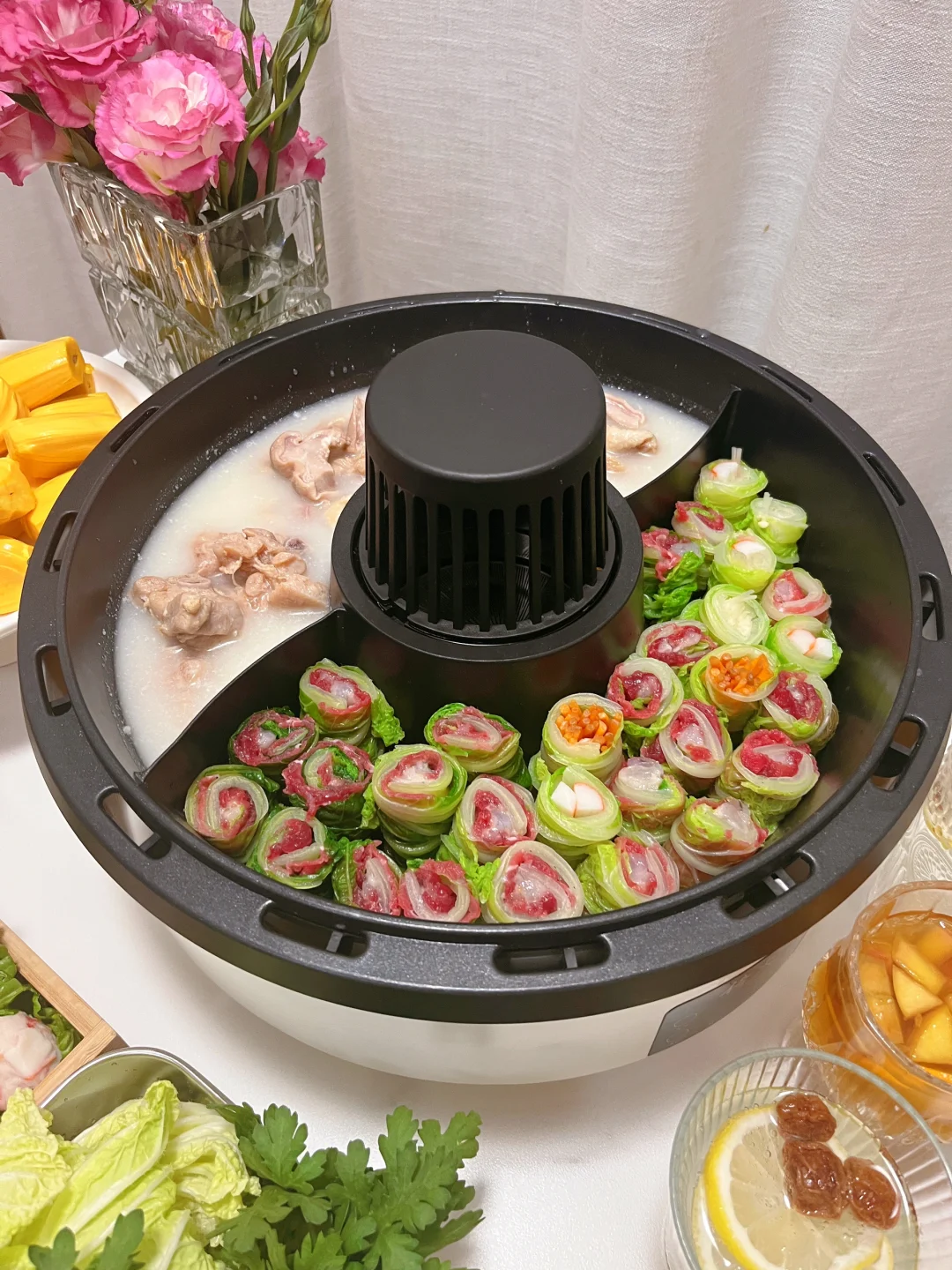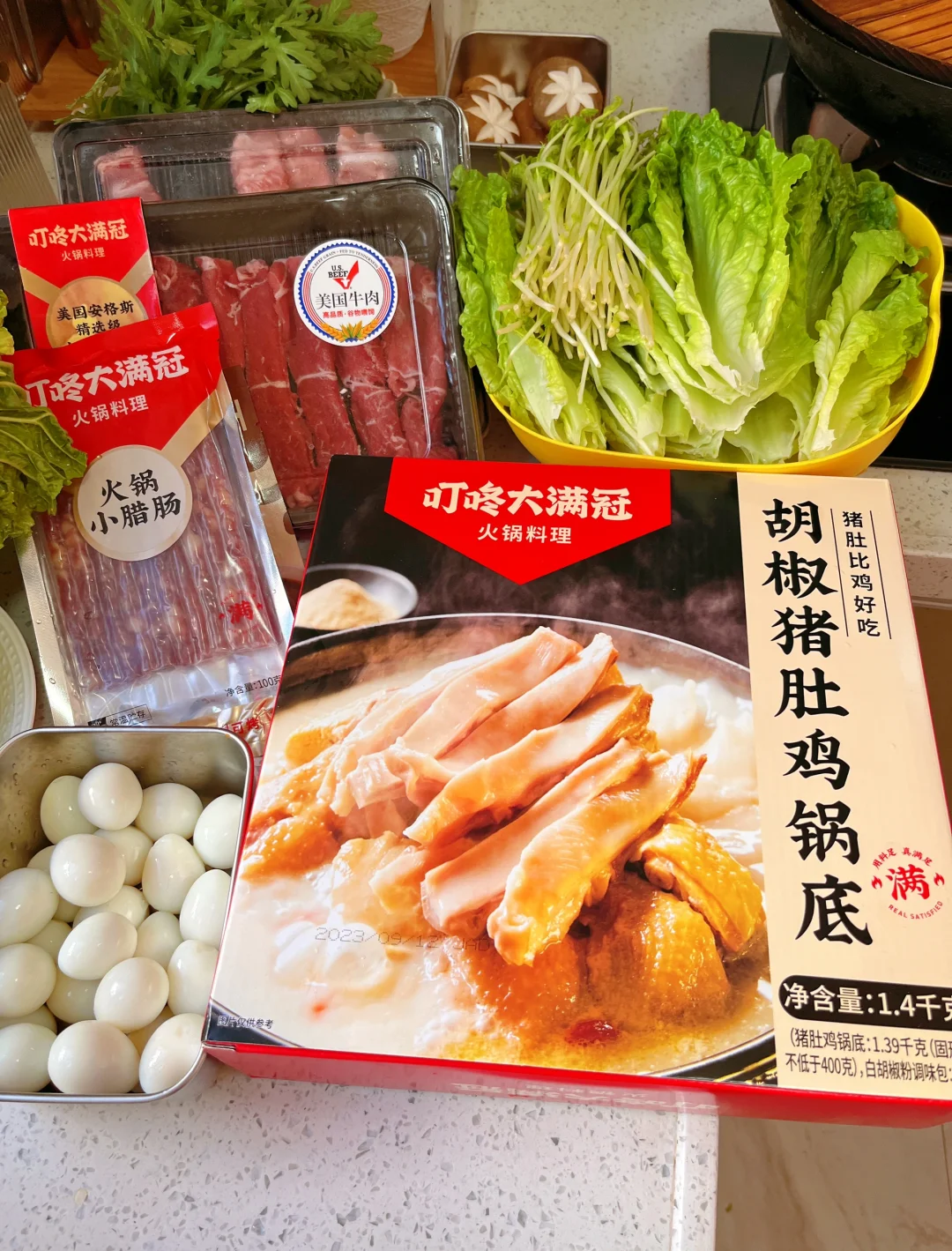 又在叮咚买菜的咕嘟咕嘟火锅大会,安排了自己爱吃的锅底和配菜,半小时就实现火锅自由,锅底选的叮咚大满冠胡椒猪肚鸡锅底,满满的鸡肉和猪肚,猪肚厚实弹牙,比鸡还好吃!汤底浓郁美味,一大锅满满的都是料,宅家吃火锅太幸福了️~