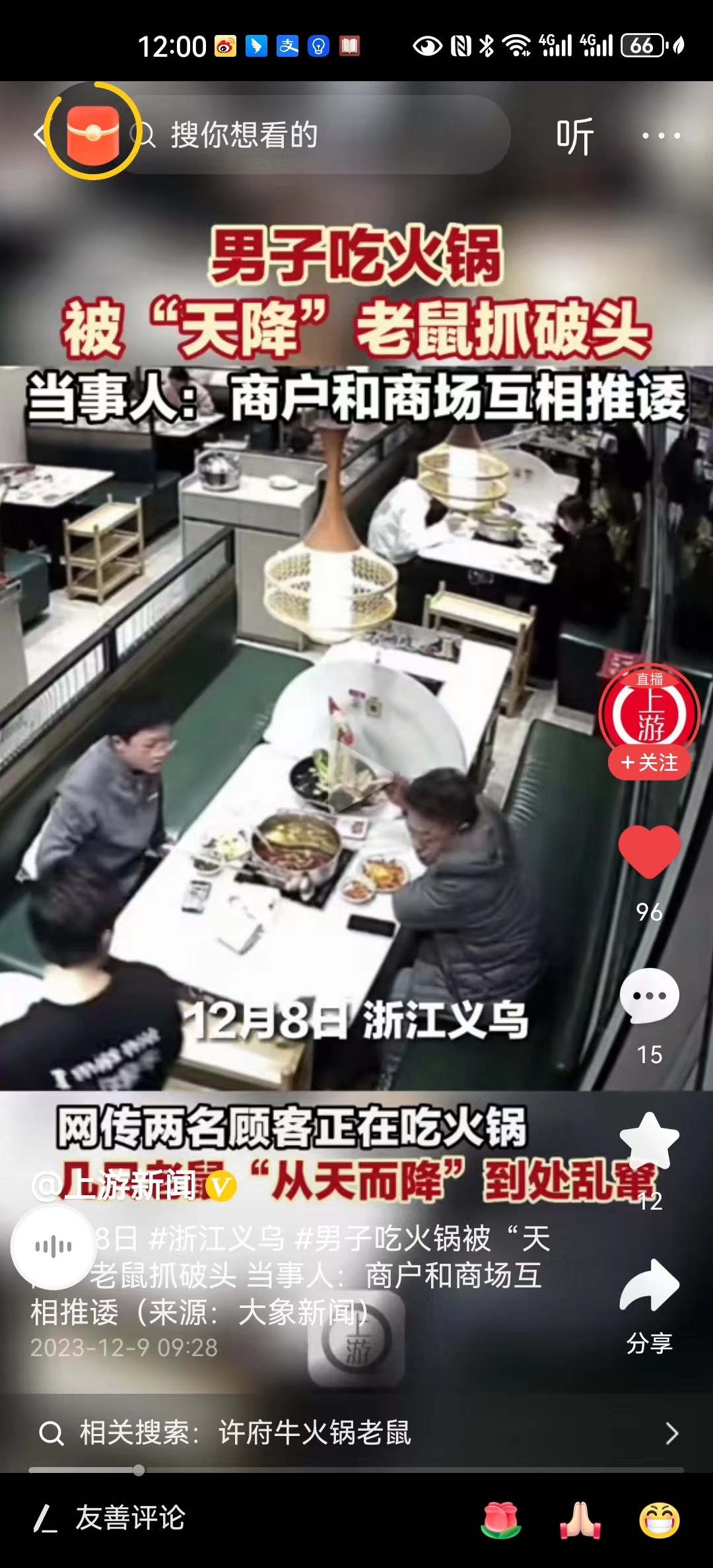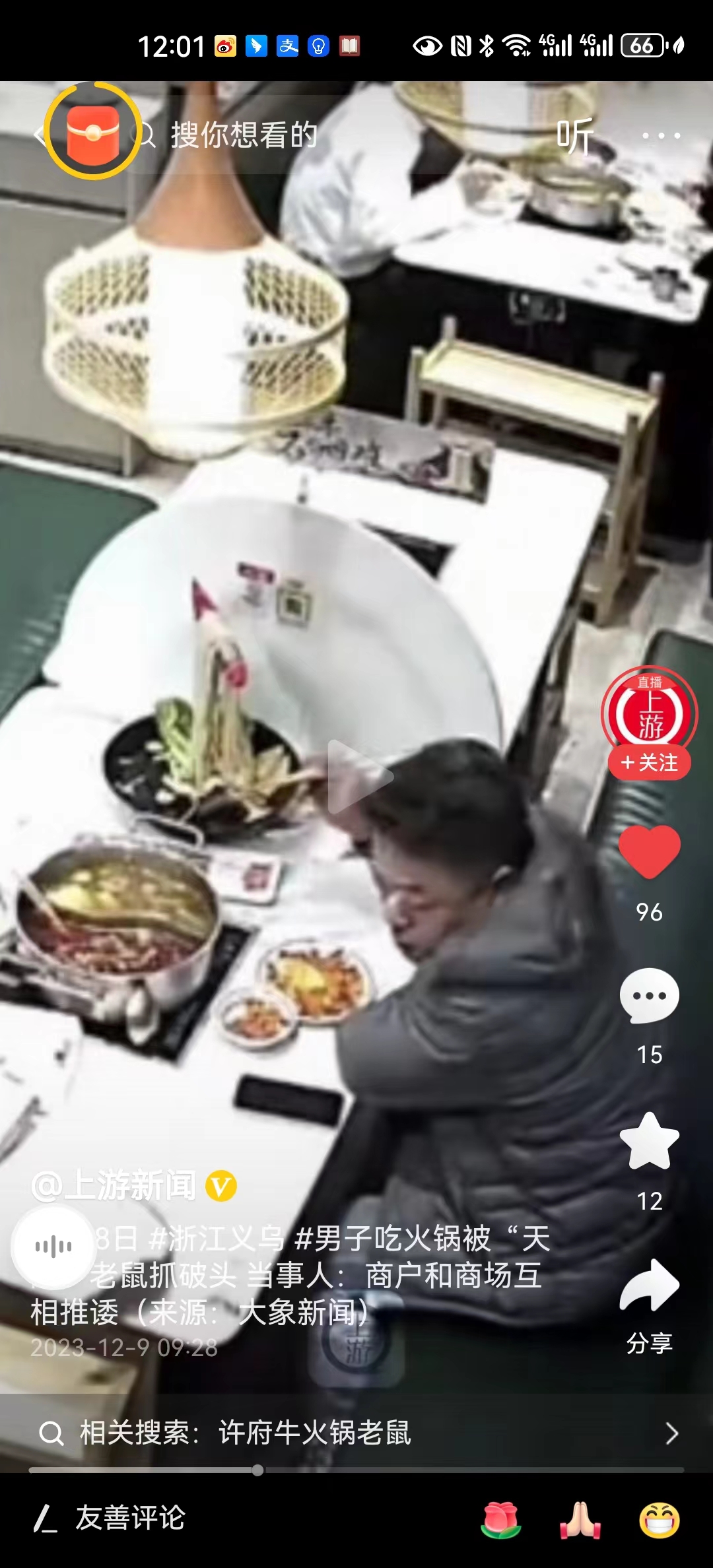 #男子吃火锅被“天降”老鼠抓破头# 这实在是太恐怖了,正在吃火锅的时候,从天花板掉下两只老鼠,而且还掉到了头上。其中一只老鼠掉下后还抓破了顾客的头皮。事后在责任追究时,商场和商户相互推卸责任,这种态度,这种事件,这种处理方式,只让顾客情何以堪啊。