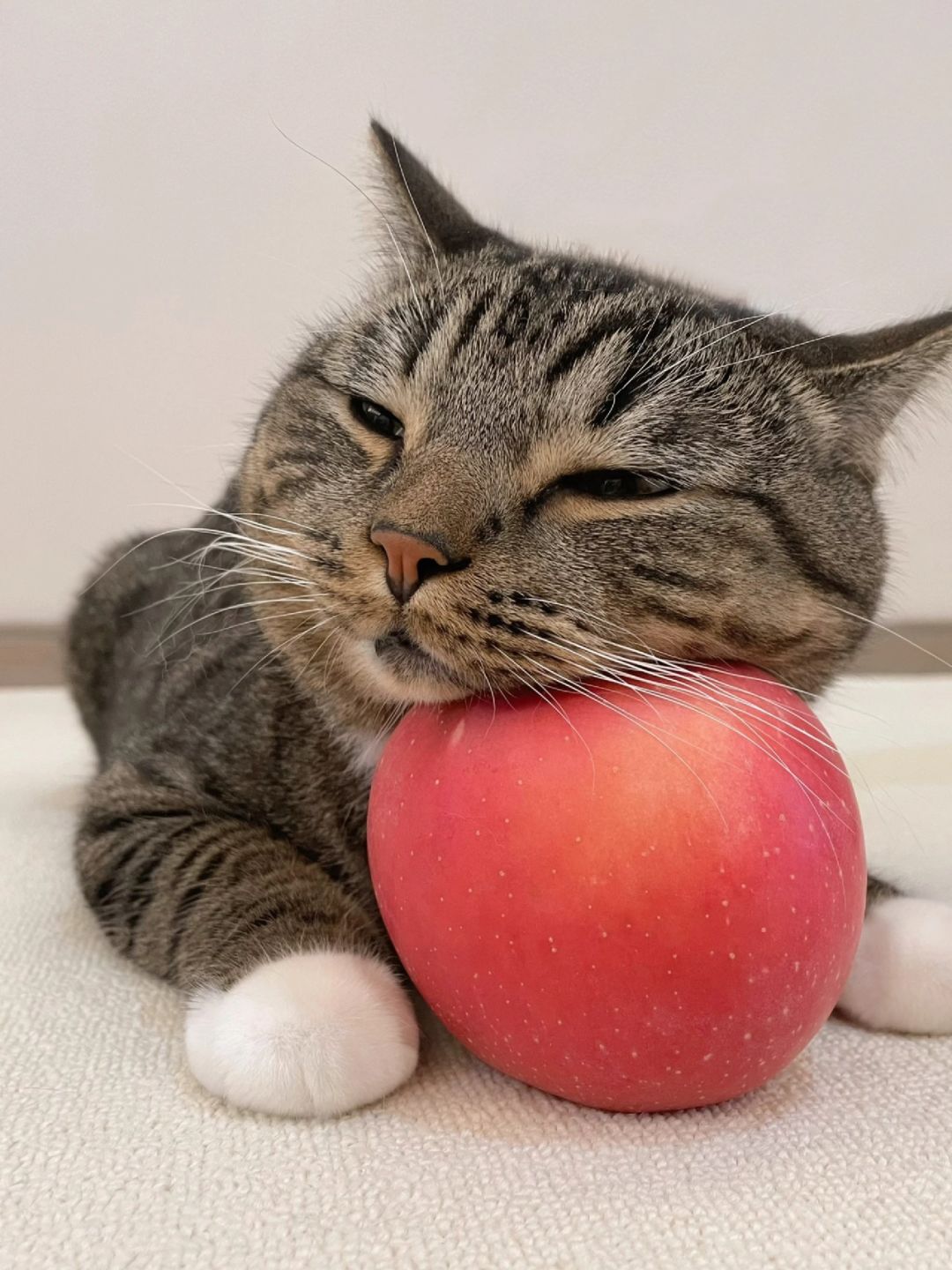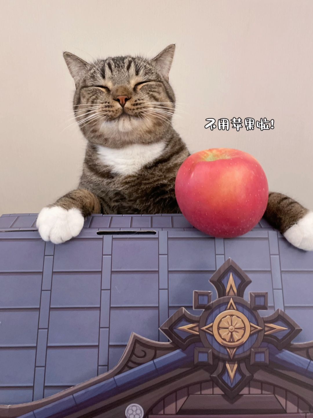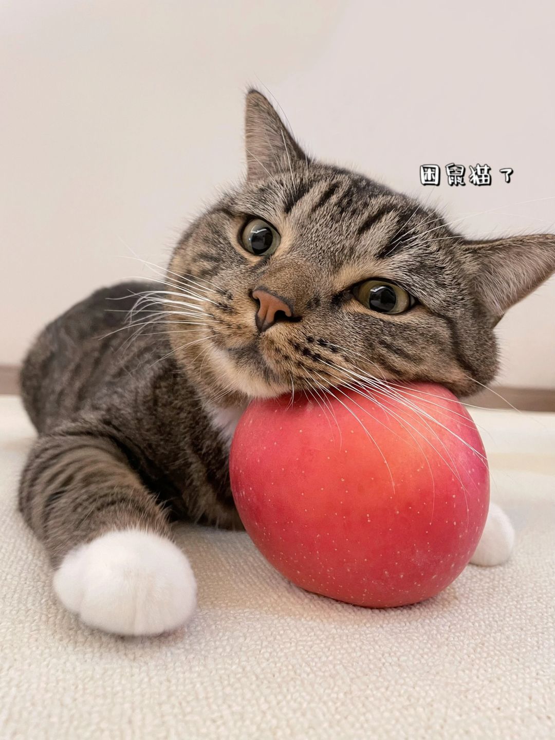 把猫猫用品都洗了,饼饼一下子没地方睡,逮着个苹果就来垫脑壳...0元就拥有苹果垫脑的感觉谁懂![自拍R]