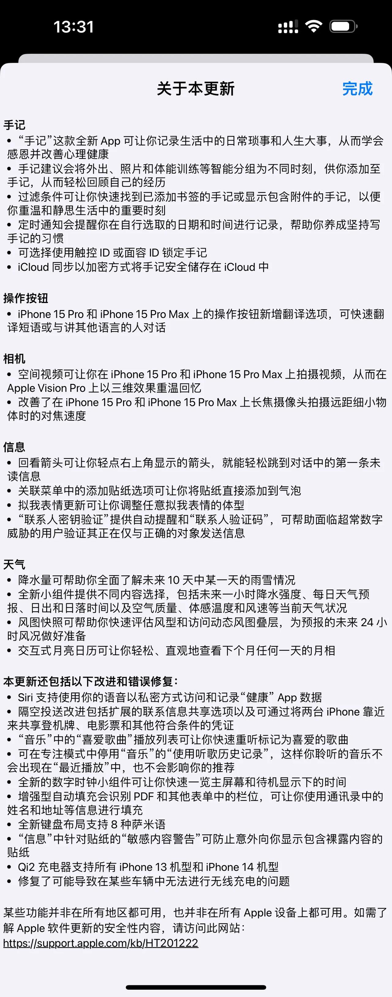 #iOS17.2正式版新增翻译功能# 正式版终于来了,更新内容如图。之前盛传的解锁全局120Hz,其实只是帧率显示软件更新了,并非苹果真的解锁了。苹果没理由增加耗电提升那么一点点的滑动流畅度。 总体iOS17.2更新应该是更好的,iOS17的用户都可以更新。