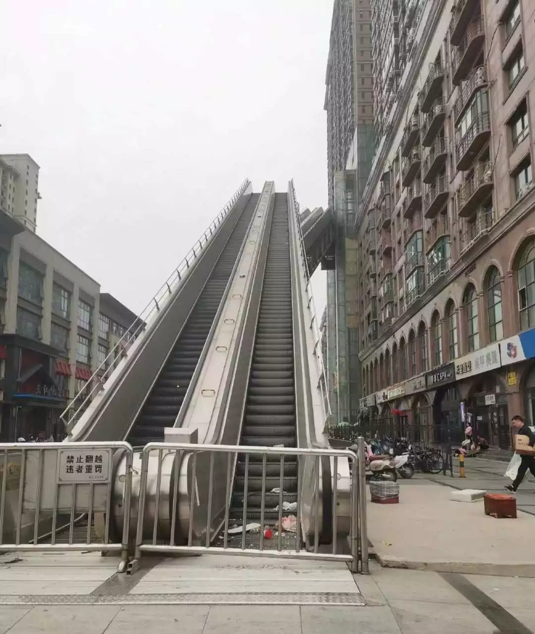 露天电扶梯,头几年挺嗨的,过几年就变成渣渣,经常被雨水淋,被雪打,维护费用高的吓人,负担不起就废弃,纯粹浪费资源