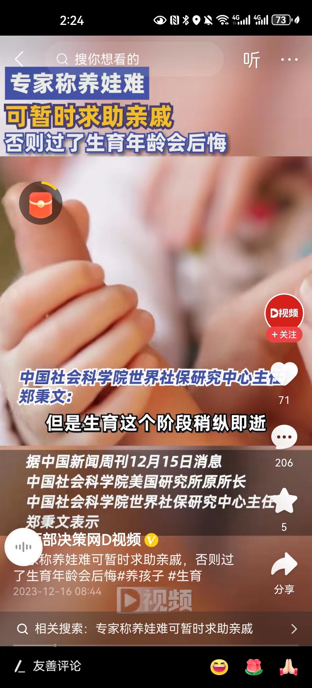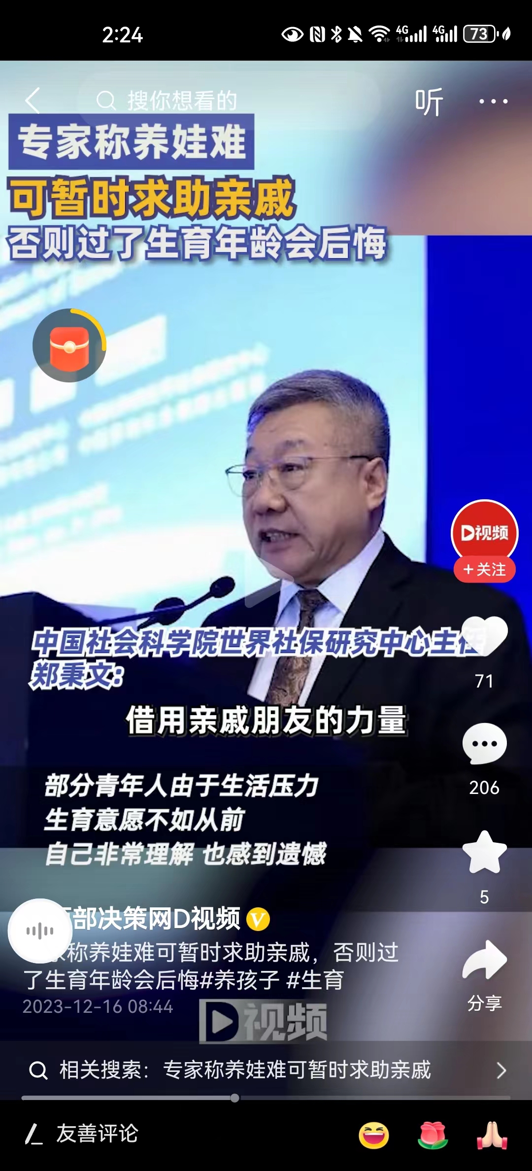 世界社保研究中心的主任郑秉文,对解决年轻人养娃困难提出来建议,但是没有想到却遭到了广大年轻人的群嘲。他提出生育年龄错过就不可能再挽回,困难是暂时的,没钱养娃,可以暂时求助于亲朋好友。千万不要错过养孩子的时机!但是对于很多年轻人来说,感觉真的无法接受。