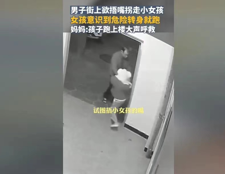 监控下一目触目惊心,这个女童也相当警觉,发现这个陌生的中年男子向他快速靠近时,转头就往楼道里跑。但是在楼道门口还是被捂嘴意图抢走。不过女童一边大声呼喊,一边挣脱跑上了楼道。此时女童母亲也在回应,准备出来查看,这名男子才仓皇逃走。