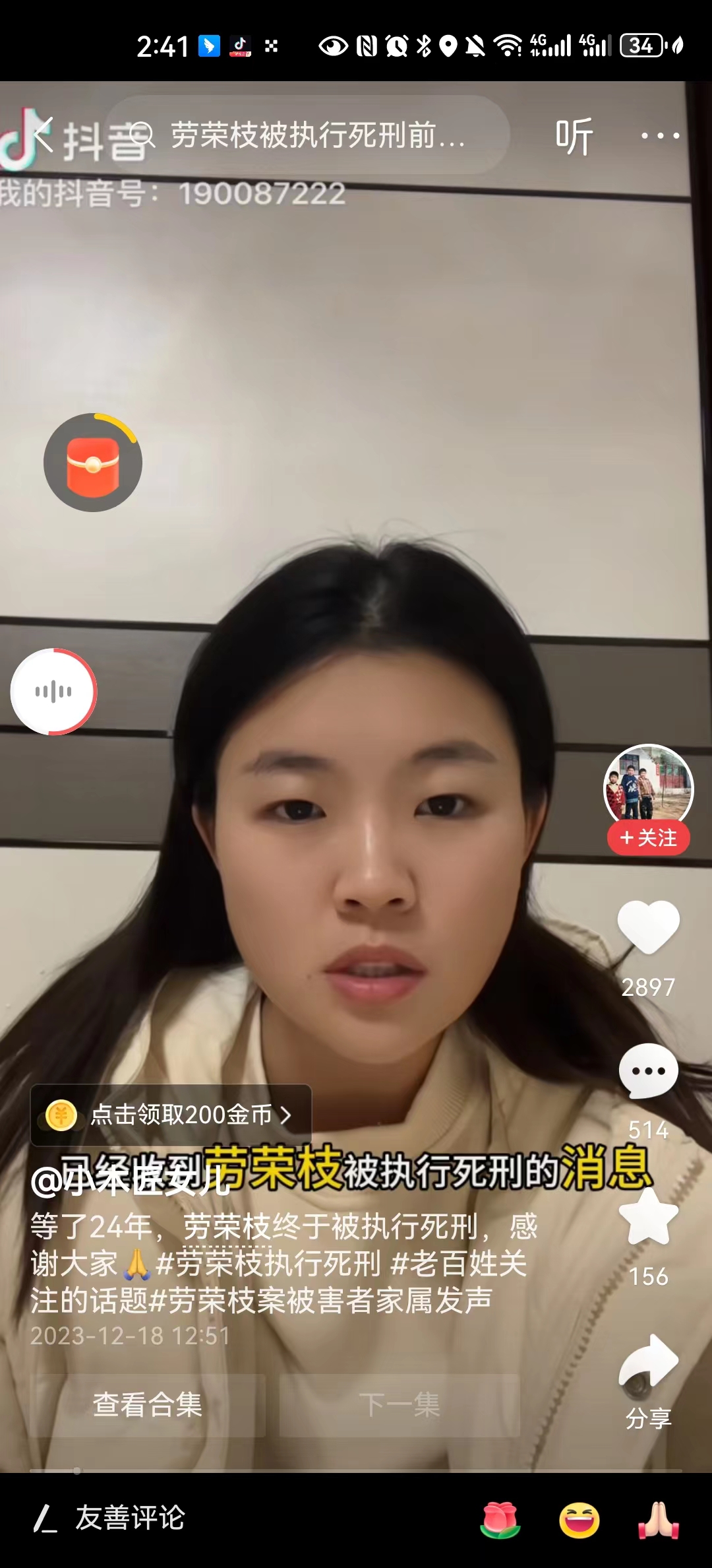 果然在2019年厦门落网之后,劳荣枝打造的人设就是人畜无害,没有干过坏事,一切都是法子英胁迫的。但其实他才是主谋呢,法子英只不过是头脑简单,四肢发达的打手。在被抓获之后拖了4年,终于被执行了。他再也看不到2024年了!这是一个公正的判决!#劳荣枝被执行# #劳荣枝2023# #劳宋枝#