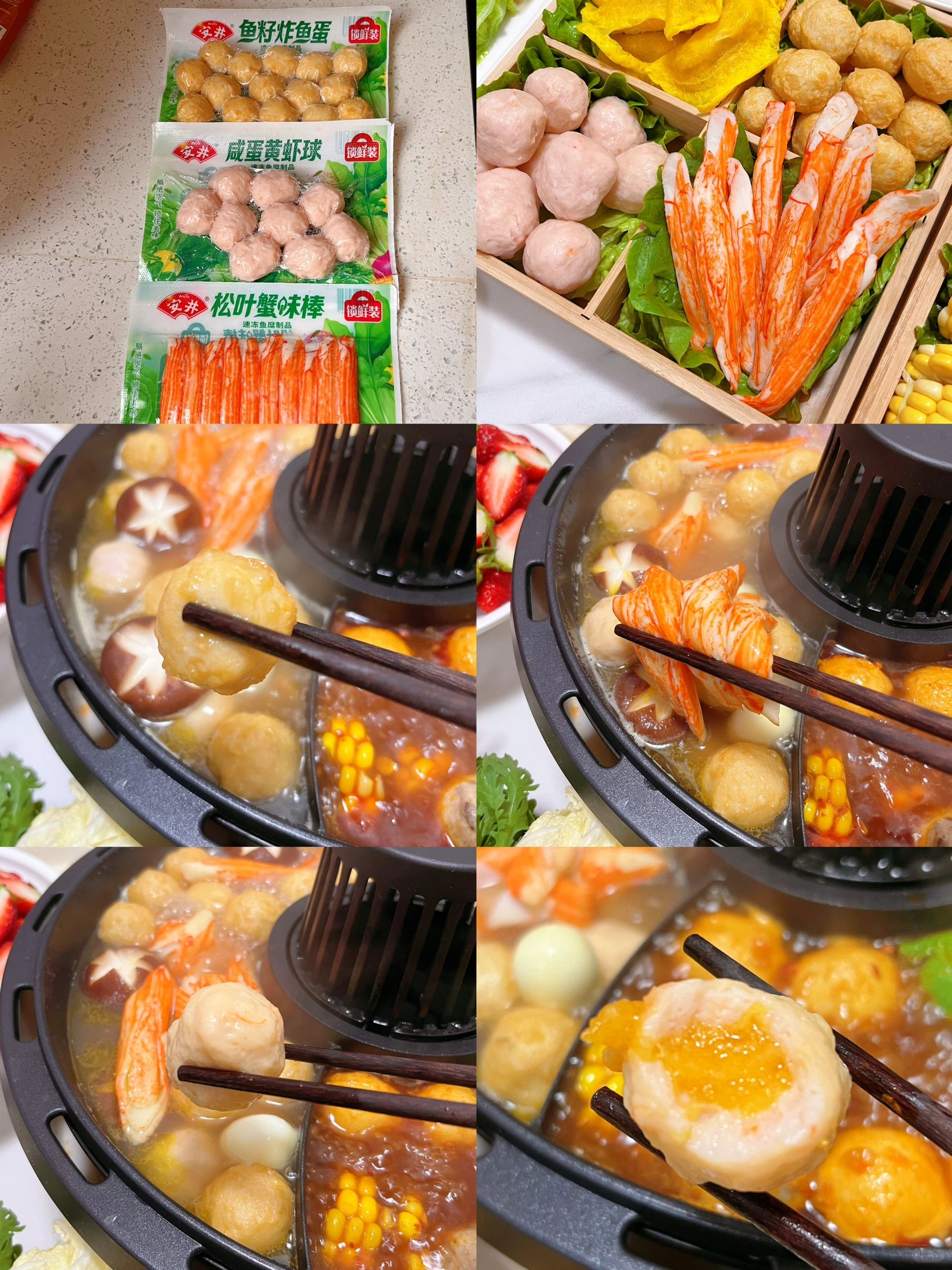 入了安井丸子锁鲜装新品——咸蛋黄虾球Q弹圆润,外皮弹嫩爽脆,包裹细腻咸蛋黄流心,鲜香与咸香交织在一起,松叶仿雪蟹口感柔韧细腻,水润嫩滑,锁鲜装鱼籽炸鱼蛋肉质饱满,鱼香浓郁~