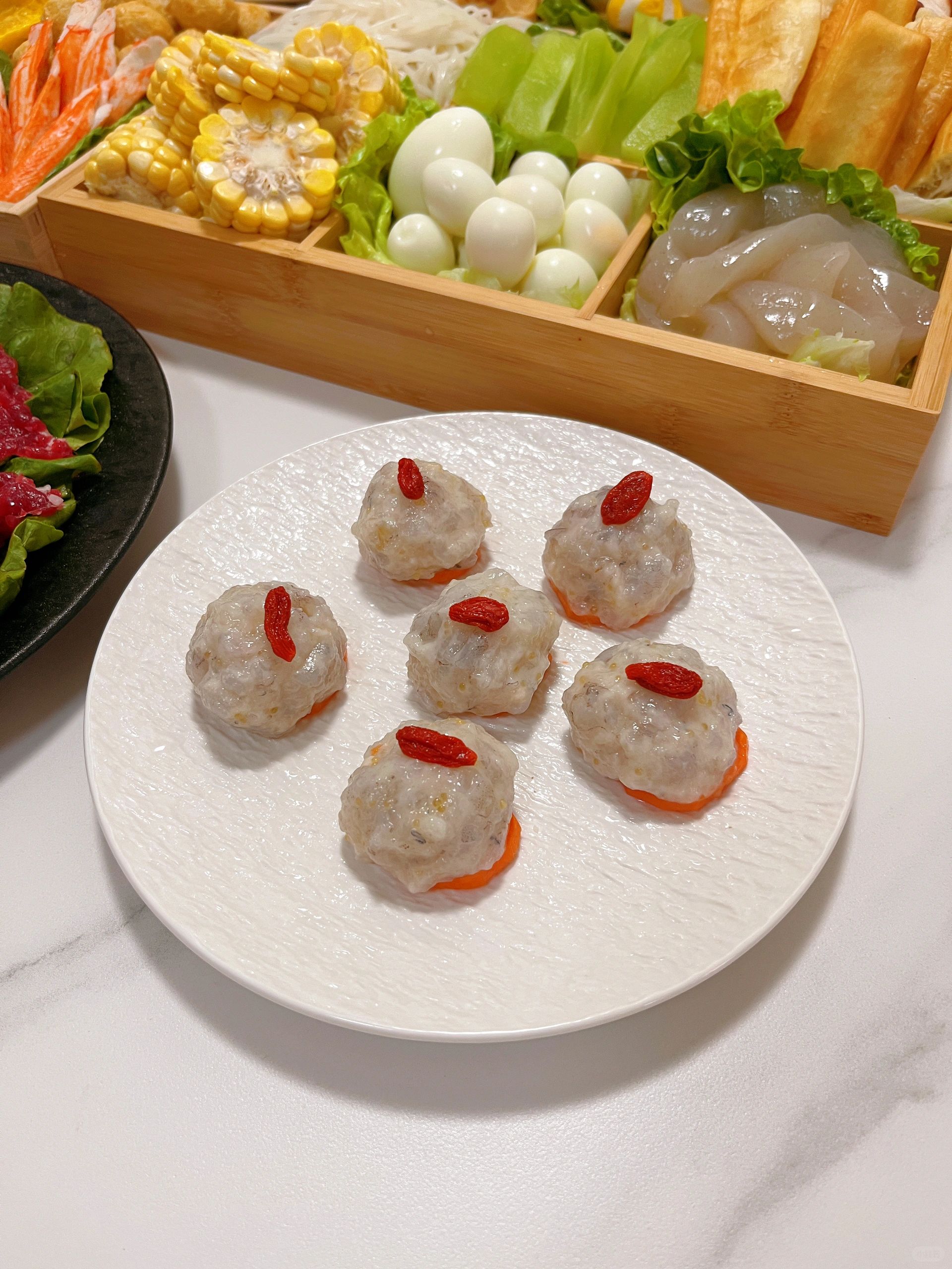 🥩荤菜:咸蛋黄虾球|松叶仿雪蟹|锁鲜鱼仔炸鱼蛋|香菇肉丸|鱼丸|鱼籽福袋|福袋|鱼豆腐|鹌鹑蛋|牛肉片|羊肉卷|响铃卷|虾滑|肉沫白菜卷