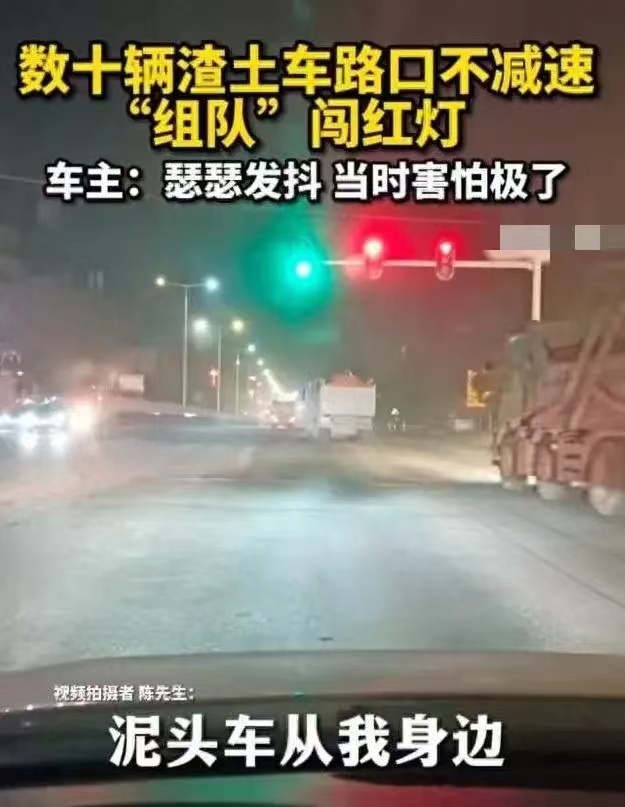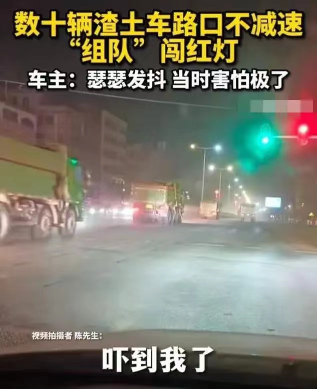 #数十辆渣土车路口不减速组队闯红灯#这已经不是交通罚款的问题,有可能都已经涉嫌