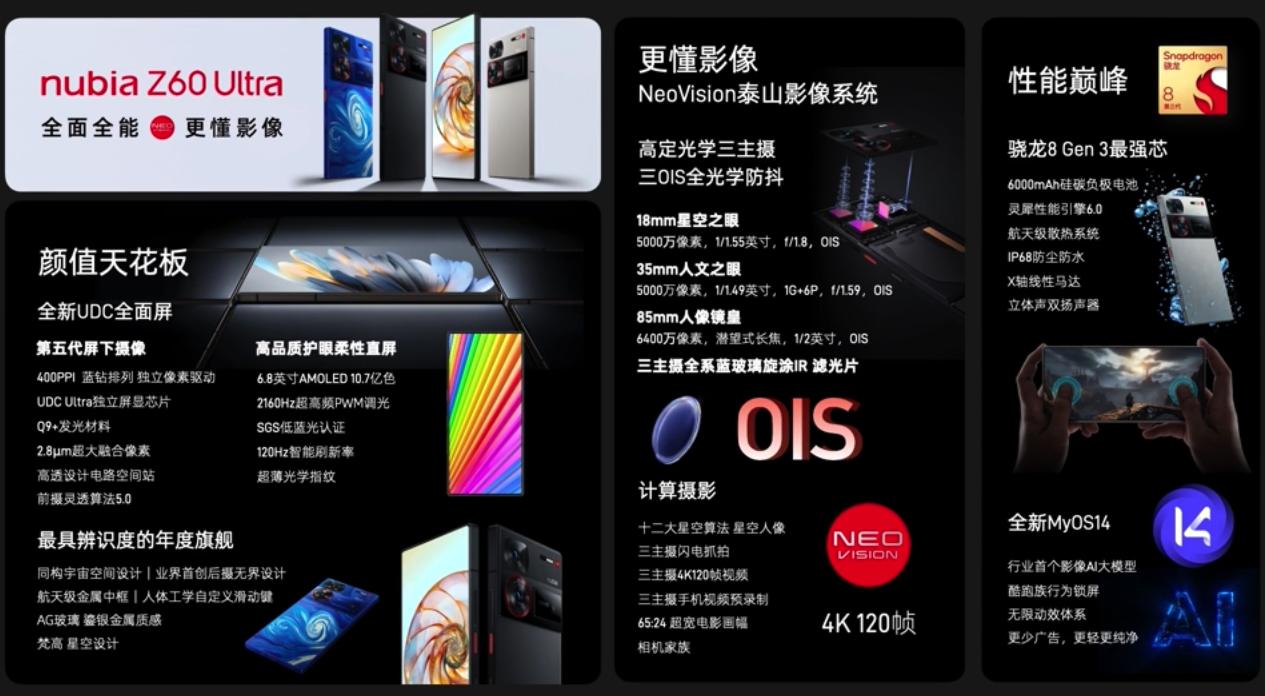 努比亚Z60 Ultra正式发布,4299起。 配置还是堆得不错,各方面都算得上特立独行的了。你觉得如何呢?#努比亚z60 ultra#