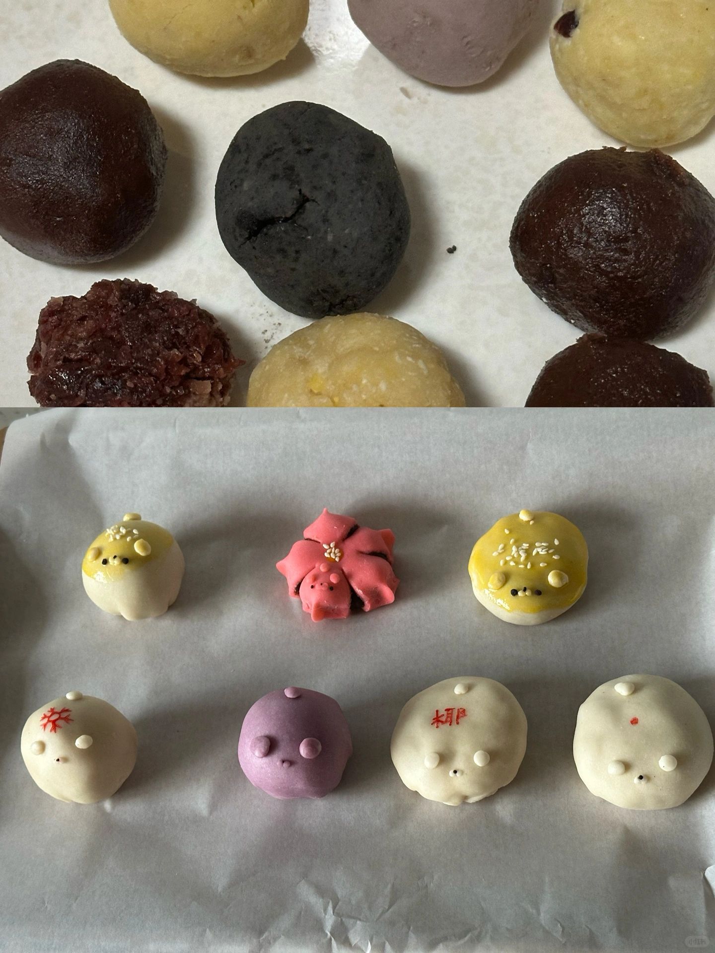 3.油皮取一点做表情备用后也分成7份