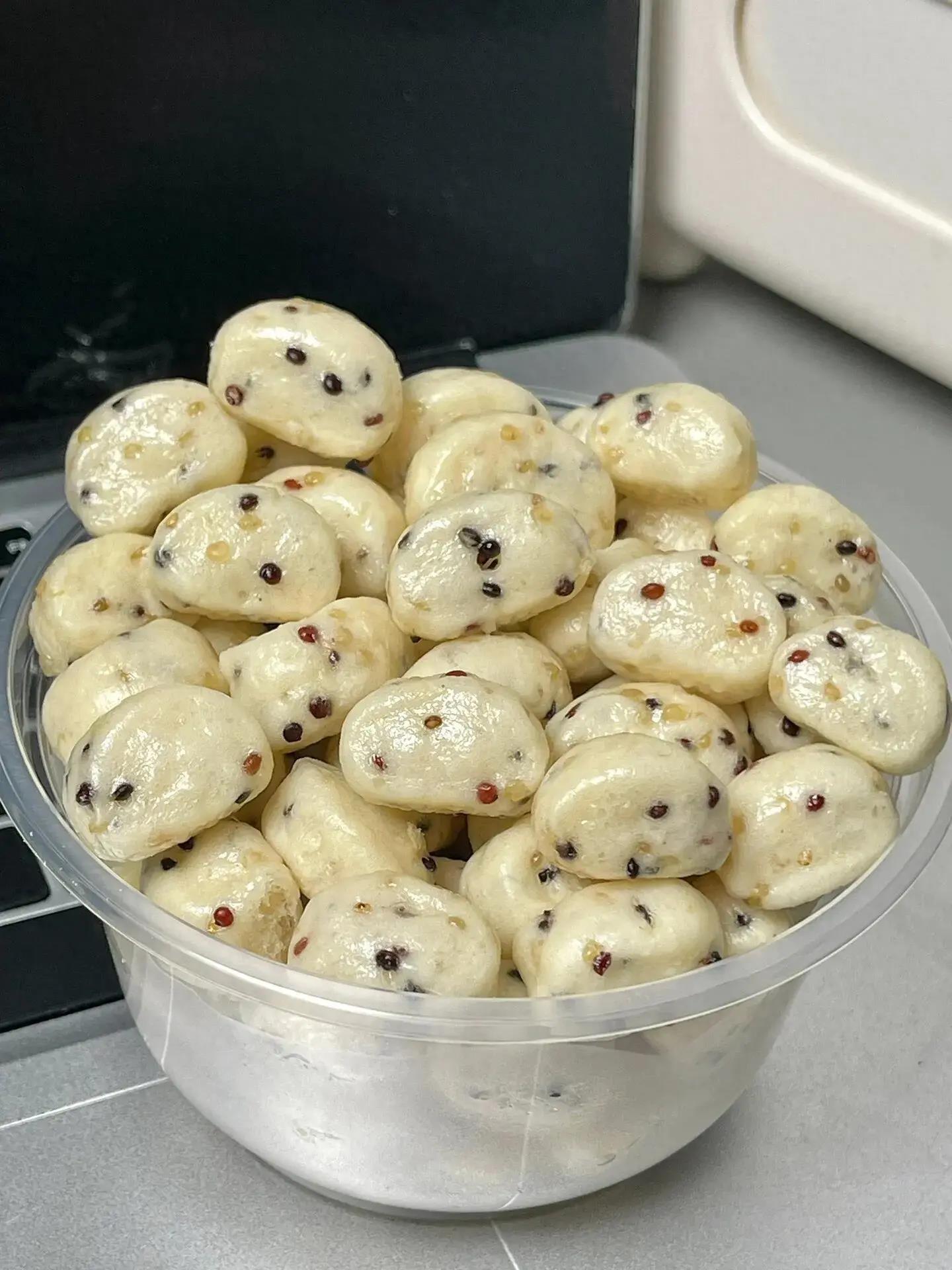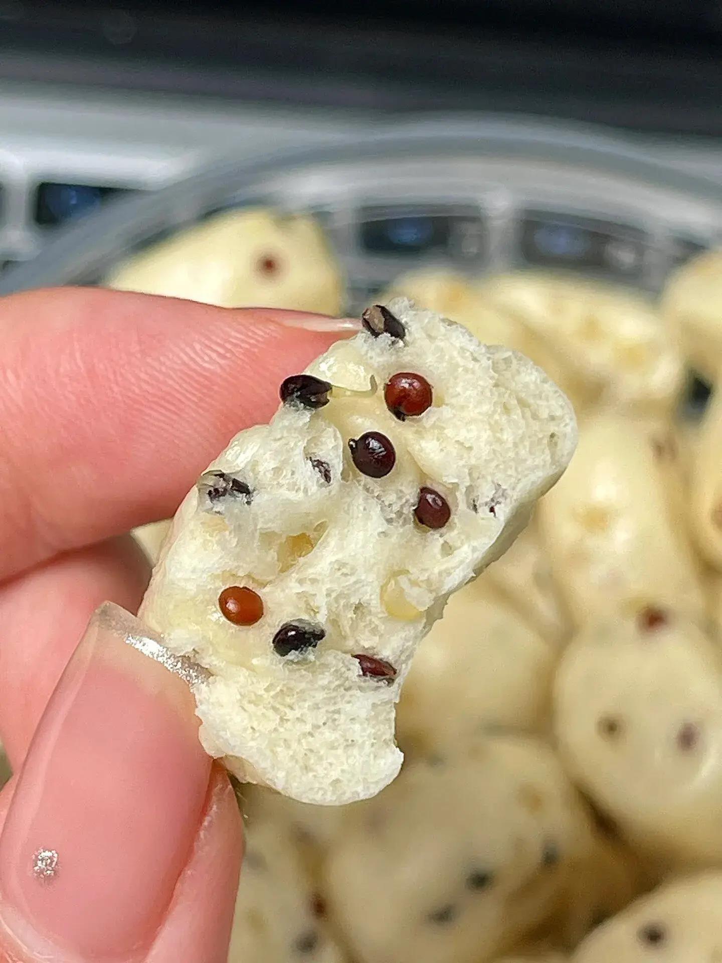 每一个都是蓬松喧软,奶香奶香,还带着藜麦的颗粒感,香甜可口,一把塞到嘴里面,越嚼越香!