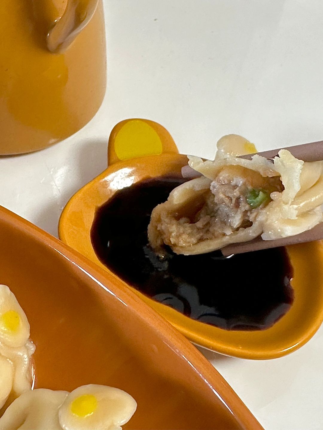 饺子皮:90g高筋面粉、45g温水、酱油