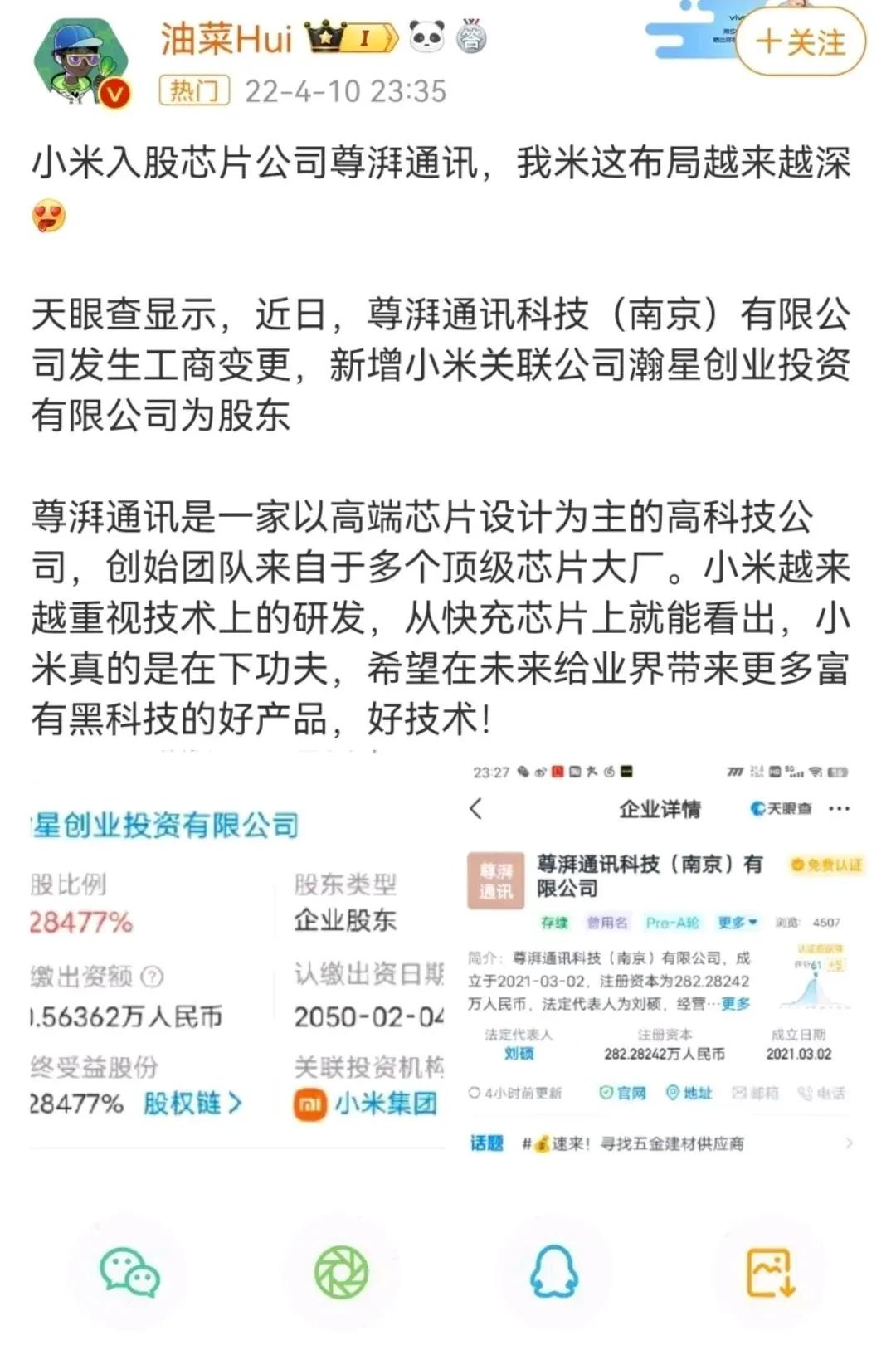 好消息:小米入股芯片公司尊湃通讯,我米这布局越来越深了。 坏消息:上海警方成功侦破一起芯片技术商业秘密案,抓获犯罪嫌疑人14人。 小米的相关部门呢,这事件不比花钱黑小米,余总口嗨要严重吧,赶紧发声明啊,好歹也要划清界限,对不实言论举报吧,这一波下去,捐再多的款口碑都回不来。