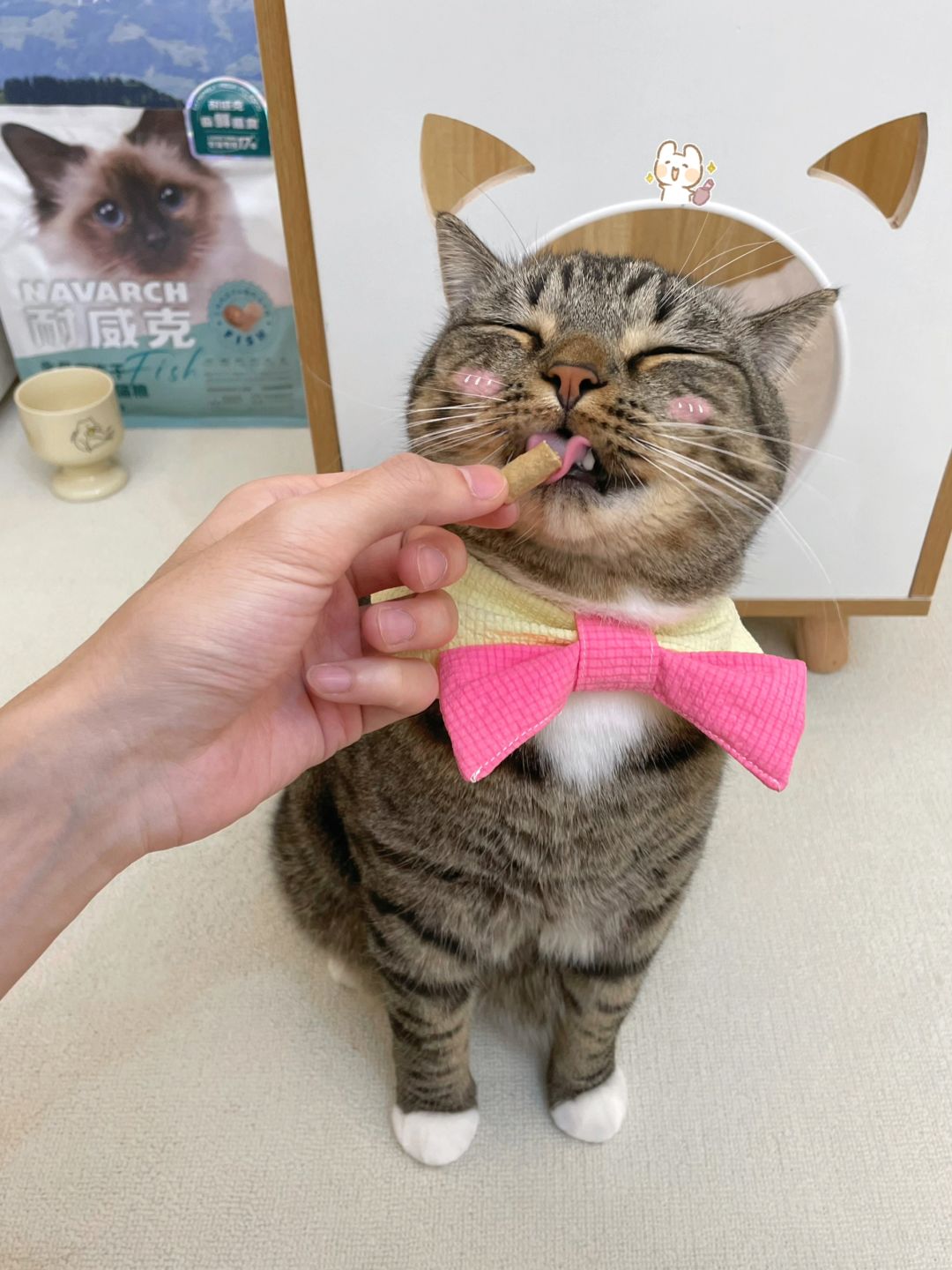 之前就是冲着它营养丰富买的,富含鱼肉和鱼油成分,长肉肉同时还能兼顾美毛(好多ee说饼饼小手可爱,看这小手滑嫩的~)而且升级之后每颗甜甜圈猫粮里还加了鱼肉冻干,饼饼是更爱吃了[派对R]