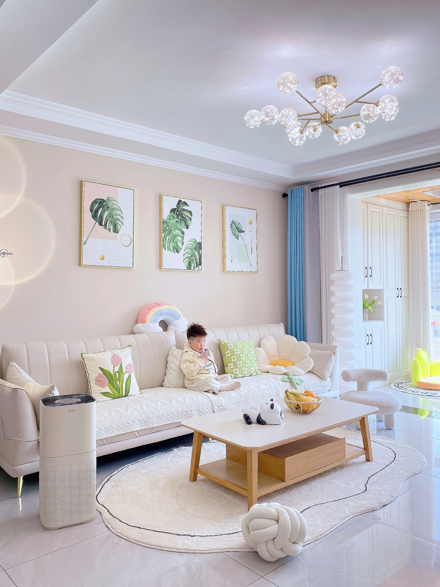 🏠110平,套内106,三室一厅 你们经常问的尺寸:沙发背景墙宽3米85,沙发3米2,茶几1米3,电视背景墙宽2米95,电视柜2米