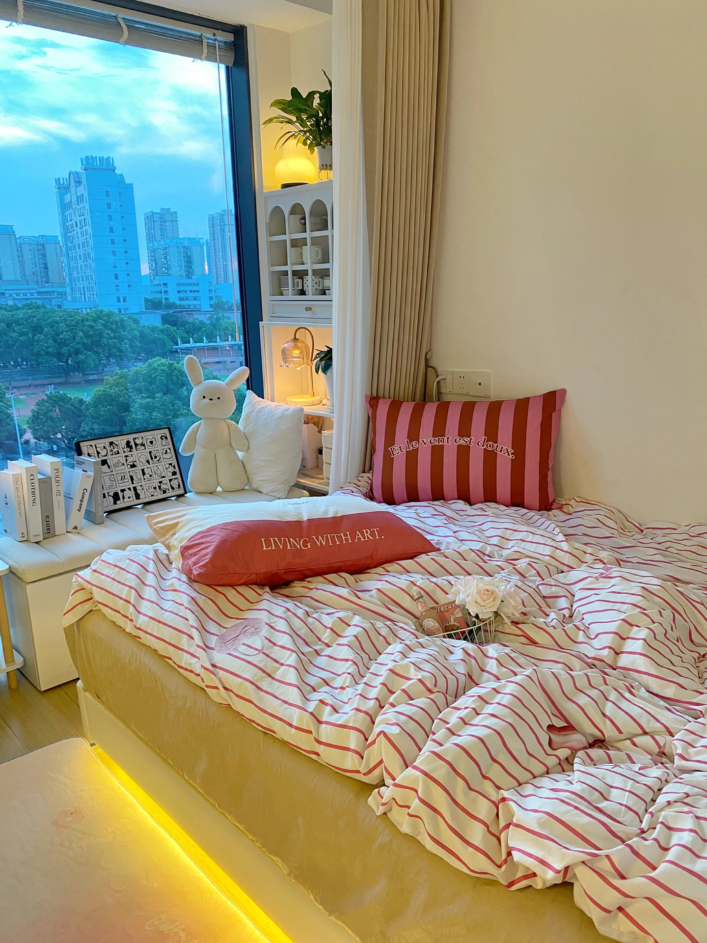 每天下班回家,一推开门就有不一样的天空,坐在飘 窗 垫上看夕阳,所有压力和烦恼都消失了~