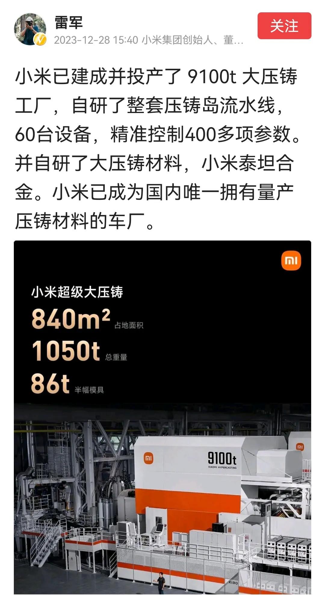 短短三年多,小米汽车迎来了史诗级进化。最新自研了9100T的大压铸岛流水线,国内唯一一家。自研了新一代的泰坦合金,并且拥有大量专利,并且还预研了小米超级电机v6,还有领先一代的电池技术和热泵技术。这里就强烈支持小米去研制光刻机,不用2年什么7nm,5nm一定能够成功的,说不定人家还可能整出2nm。#评论区晒图挑战赛#