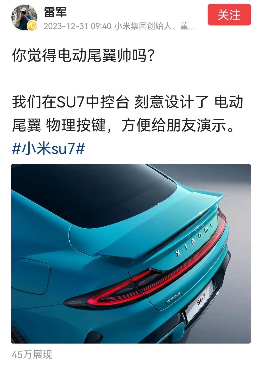 雷总又有的忙了,技术发布会开会后,头条微博也要发起来,后视镜,颜色,尾翼,下一篇应该是门把手了,这样发下去,起码可以发到汽车上市。但似乎这些也开启了评论管理。