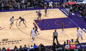 哈登关键三分锁定胜局! 北京时间1月4日,快船与太阳的比赛进行至末节还有1分40秒,哈登关键三分锁定胜局。 图一:波尔-波尔的三分,帮助太阳追至117-125仅8分之差,理论上他们还有逆转希望。 图二:结果回来,哈登弧顶一对一面对波尔波尔强行轰进三分,将比分定格在128-117,又建立两位数以上优势,比赛仅剩下100秒的情况下,锁定胜局。 哈登,厉害啊!