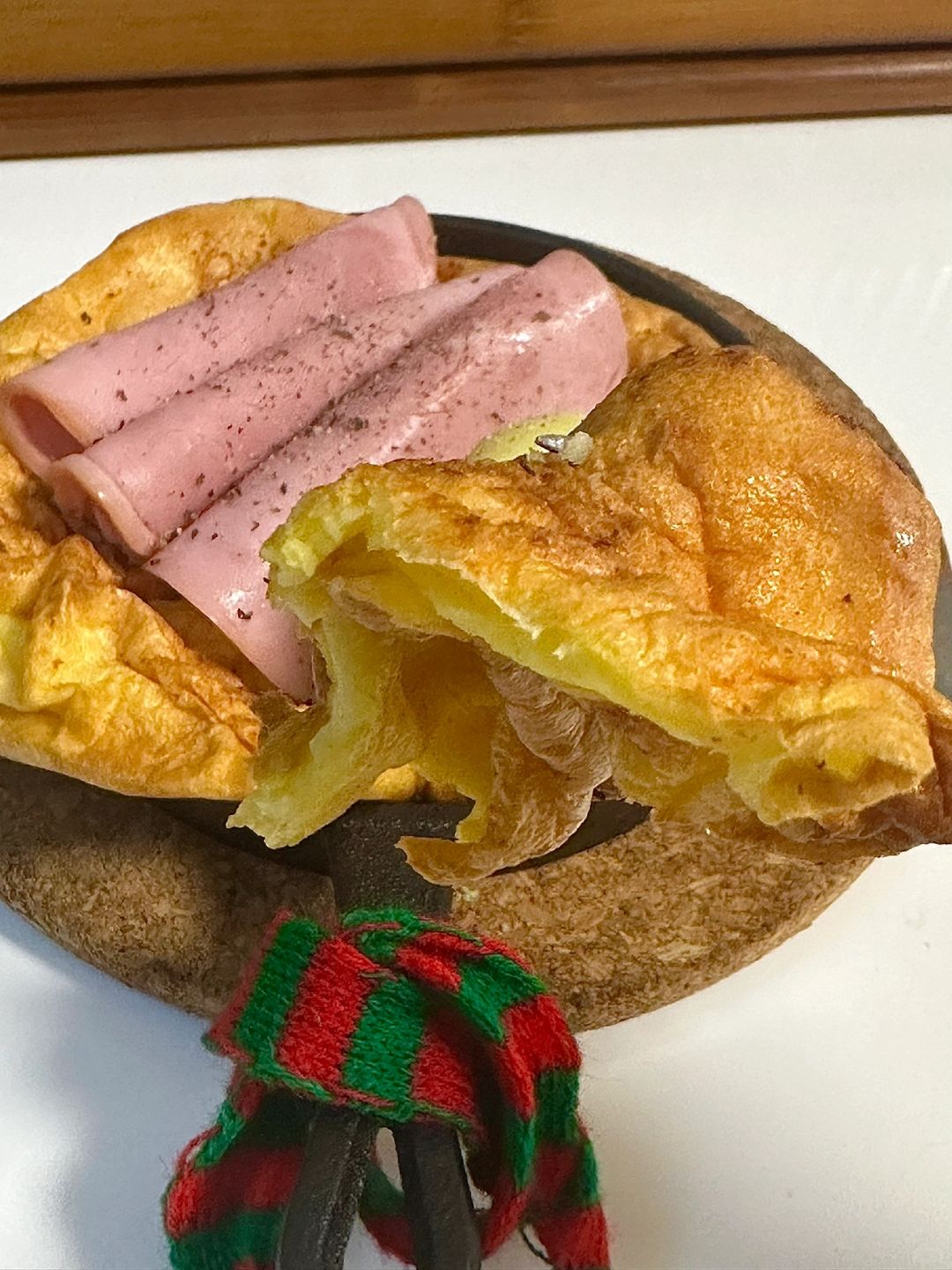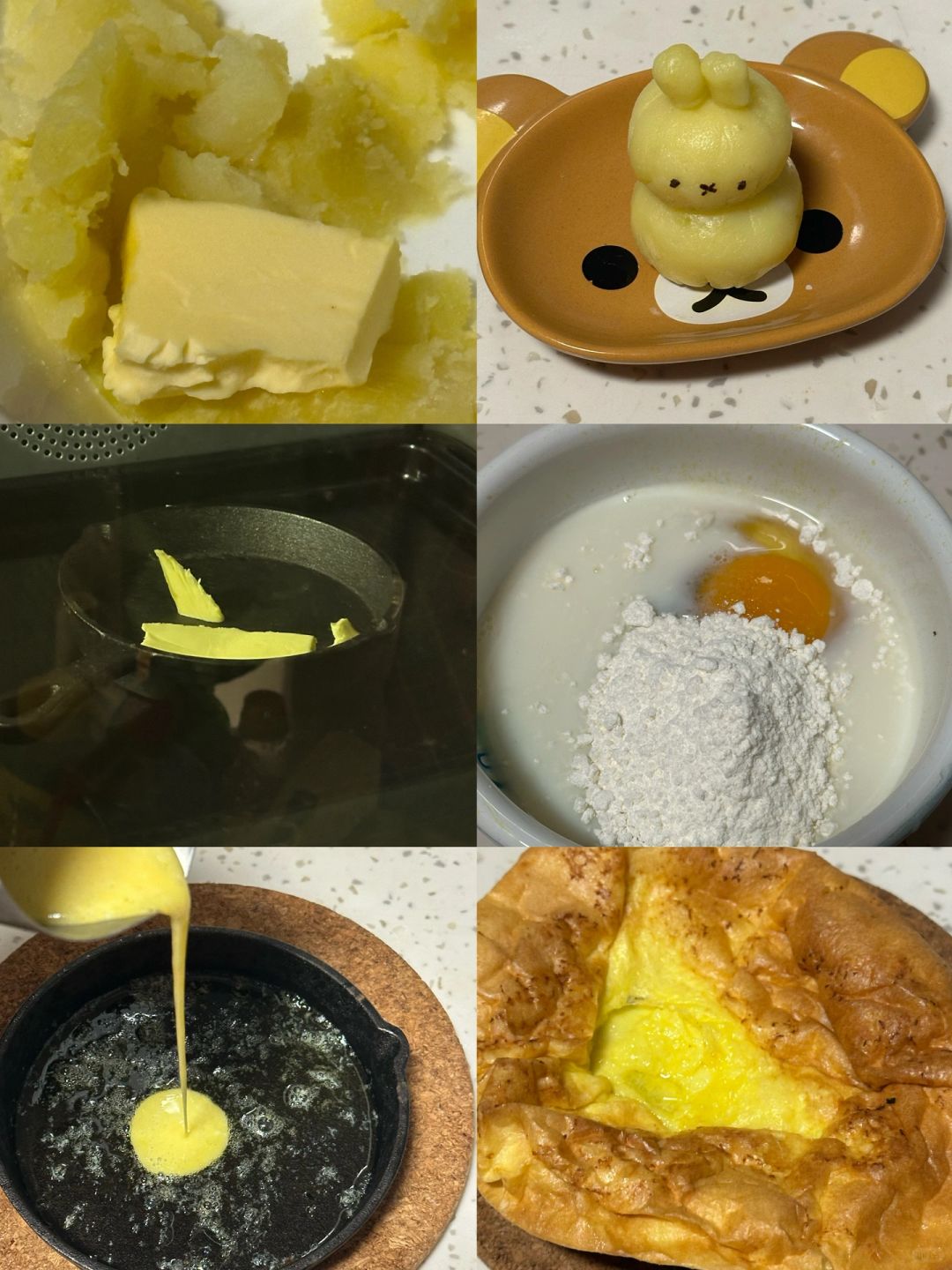 之前为了制作荷兰松饼买了一个小铸铁锅,然后搞忘了,生锈了才想起来 配料: 松饼:一个蛋、50g牛奶、50g面粉、5g糖 其他:7g黄油 1.黄油放入铸铁锅一起预热200度 2.松饼配料混合后直接倒入,200度烤15分钟