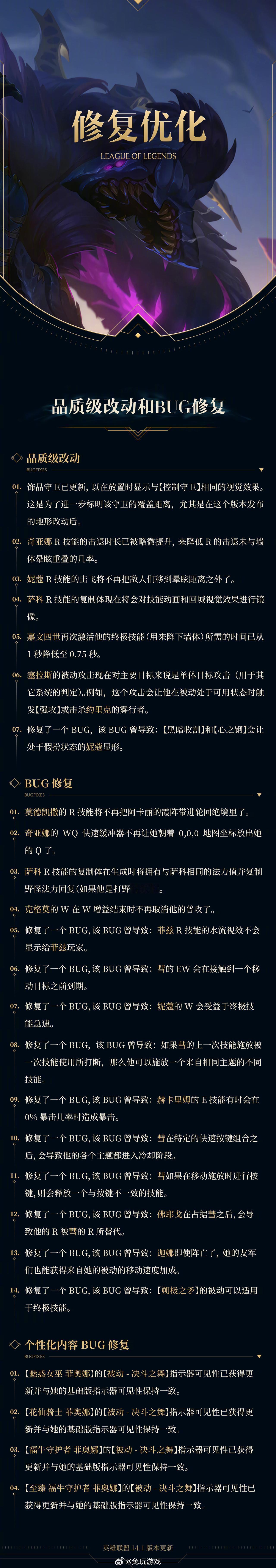 #英雄联盟2024新赛季# 此次更新的具体内容⬇️ 《英雄联盟》团队以一次大型玩法更新带来强势开局!新增了虚空巢虫、虚空蠕虫、虚空野怪、3种拥有各自巢穴地形的纳什男爵,对每条战线和野区进行了地图改动,超过100个装备改动(包含新装备),对彗的增强,动态音乐,新的游戏内任务,击拳庆祝,以及更多!详情🔎请点击图片查看