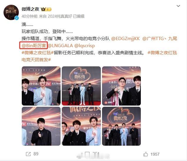 官方发的LPL选手红毯返图,文案里还有Bin哥呢,咱彬子去哪儿了?[思考][快哭了] #刘青松红毯造型##Gala红毯造型##英雄联盟#