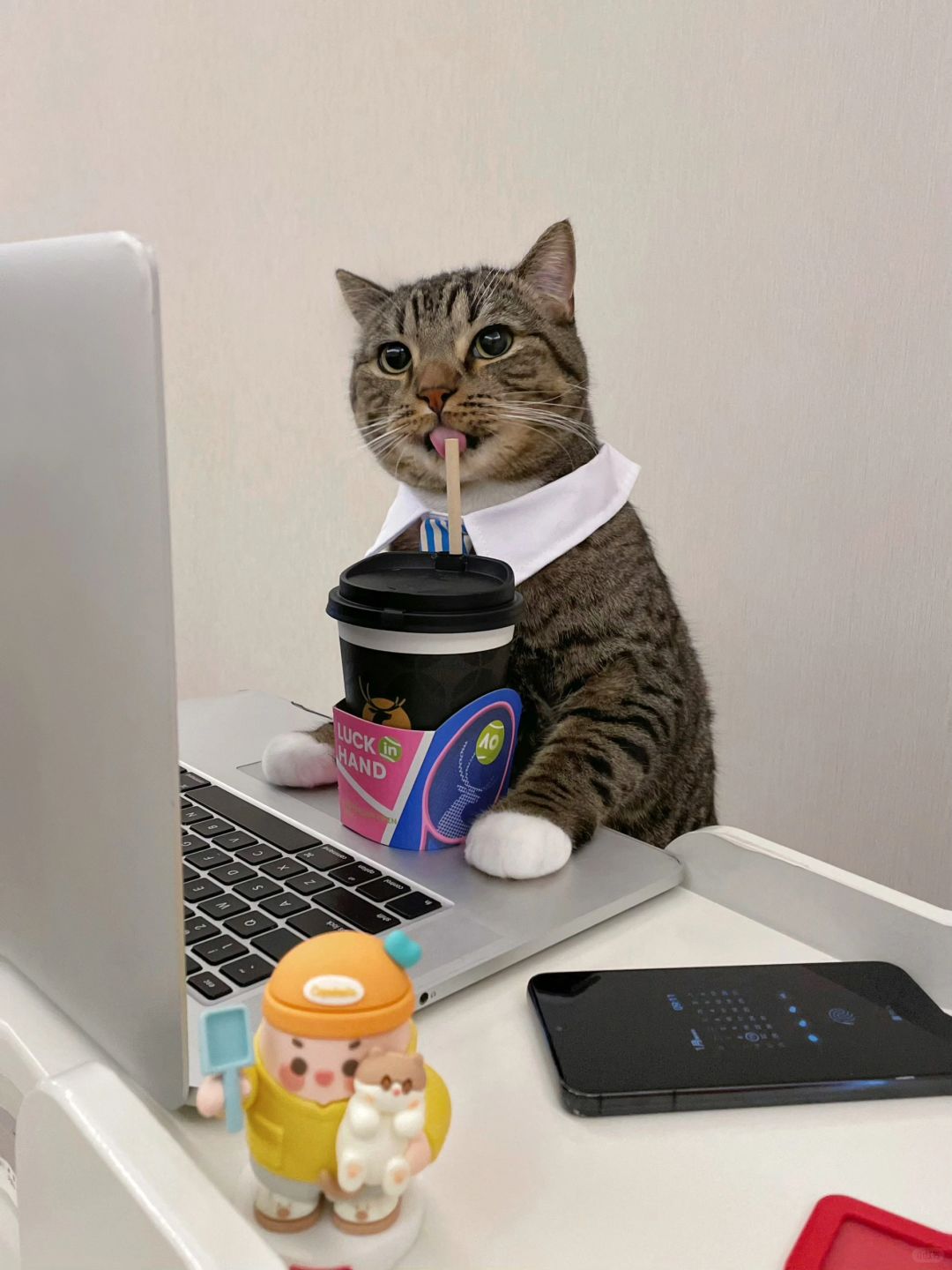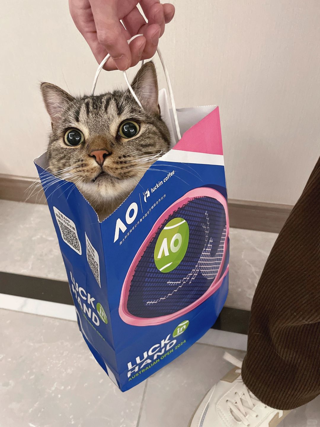 可怜我的咖啡!本来剩了些准备待会打球的时候喝的 [扯脸H],没办法了,那就提着你这只捣蛋小猫咪去吧!