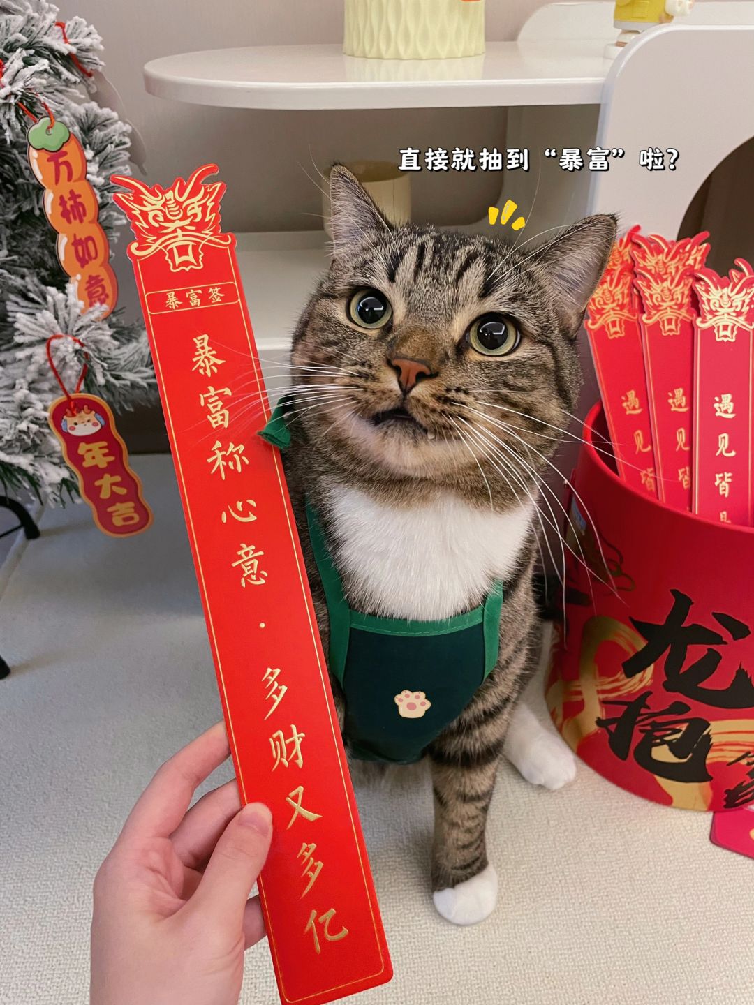 吃了饭饼子就招呼我过来看他购置的年货,让我抽个签!哈哈也是运气爆棚,抽到了暴富!这下打麻将不愁咯[合十R]!