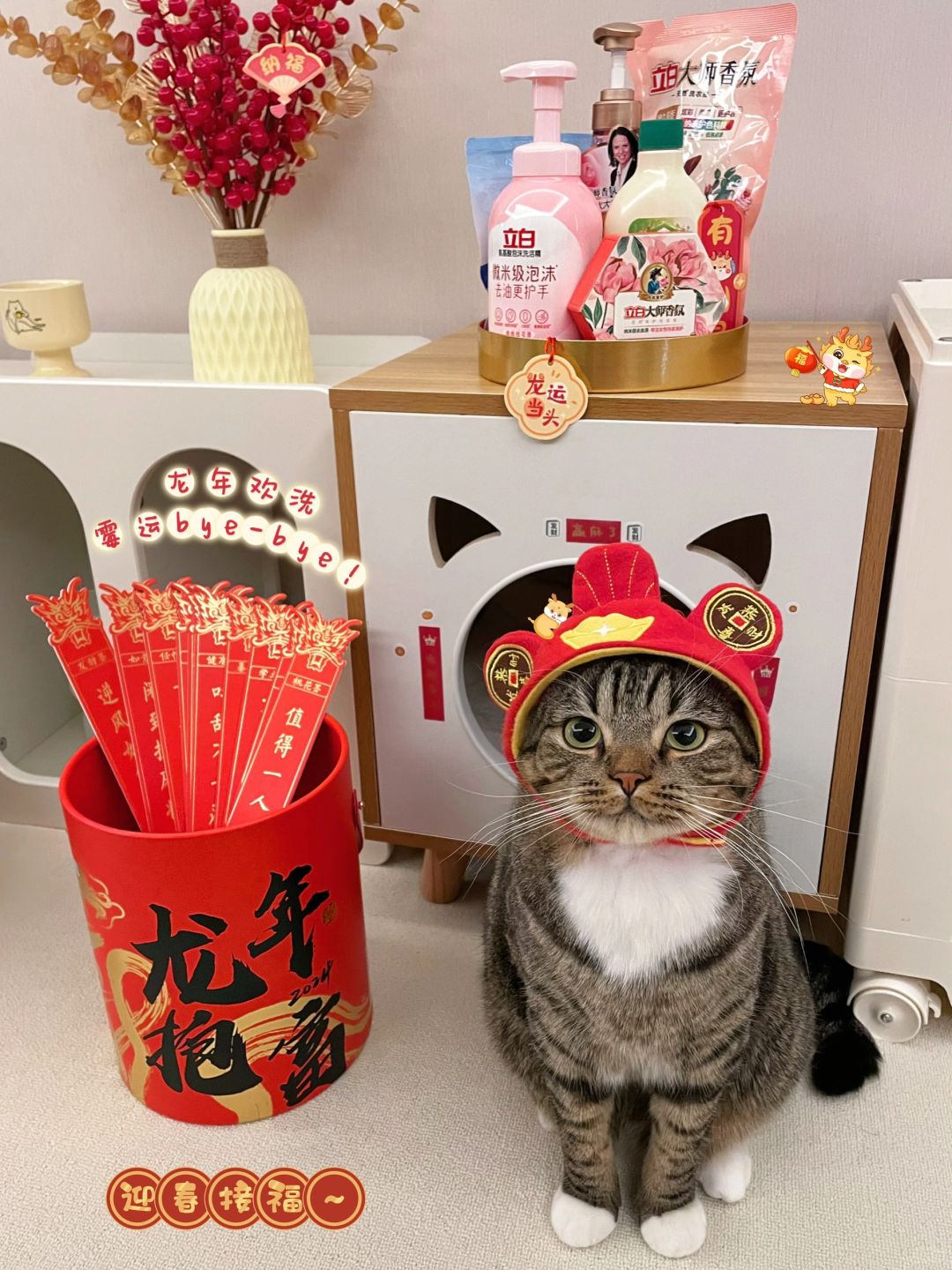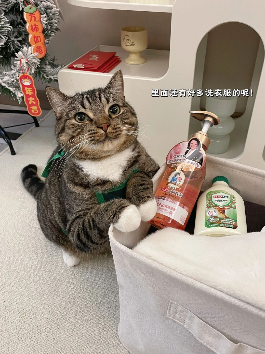 还想问他年货就买了个抽签筒?他赶紧把洗好的衣服拿过来邀功,原来立白这个龙年抱富桶里东西这么丰富!🔥而且桶子看着就喜庆!拿来当摆件新年一定红红火火!