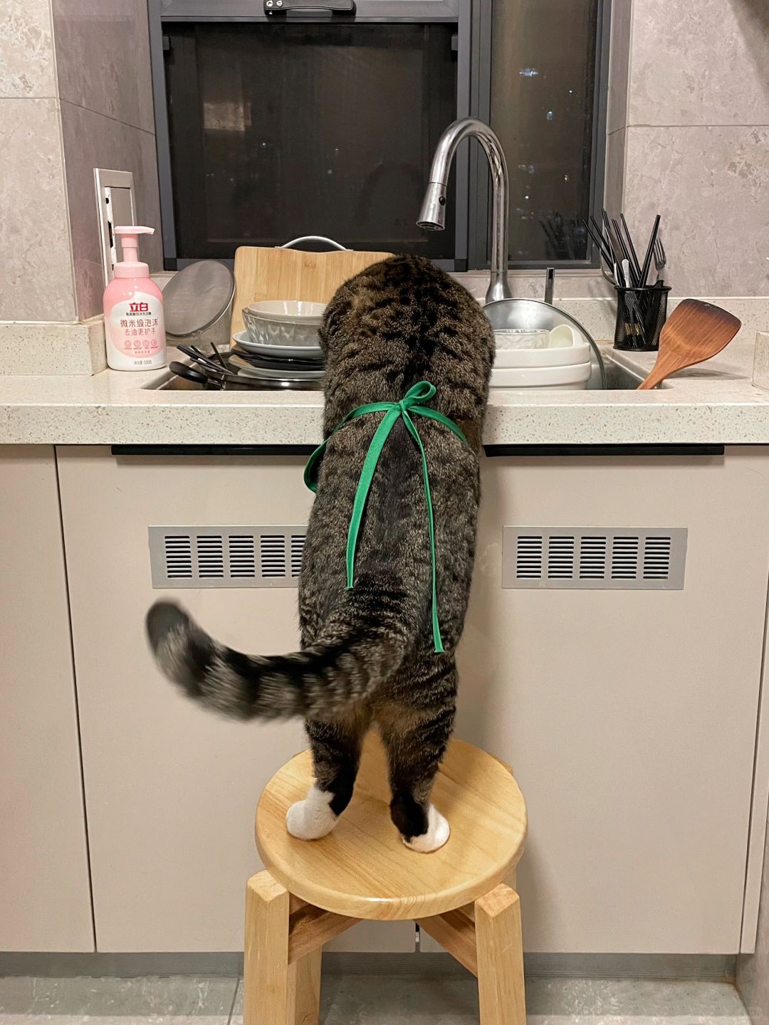 千辛万苦把我家猫养大了,土猫咋啦,可聪明啦!它说让我做甩手掌柜,他来当家!今天一觉起来, 饼已经把饭做好在洗碗了![doge]